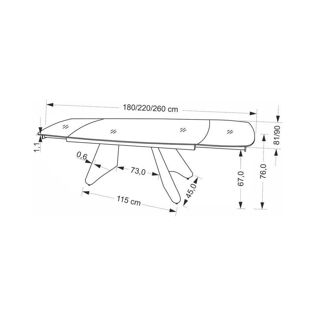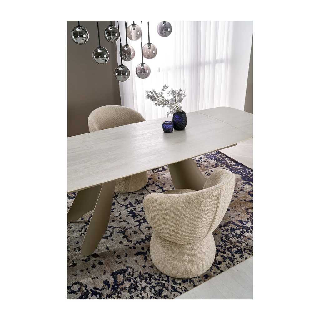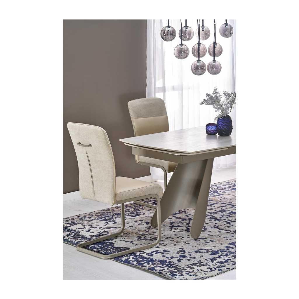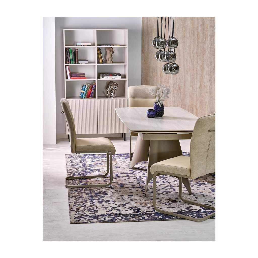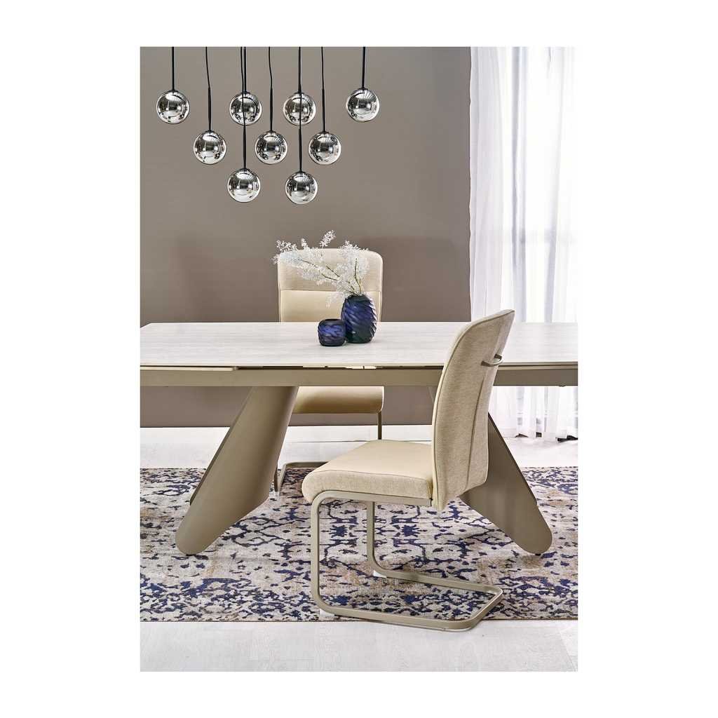 Az Abelard étkezőasztal egyszerre modern és funkcionális megoldás, amely ideális választás nagyobb családok vagy társasági összejövetelek számára. A kőből készült felső deszka és a fém alap biztosítja a tartósságot és a stabilitást, miközben a téglalap formájú kialakítás eleganciát csempész minden étkezőbe. Az asztal bővíthető, így akár 260 cm hosszúra is kinyitható, így 8 személy kényelmes étkezésére nyújt helyet.