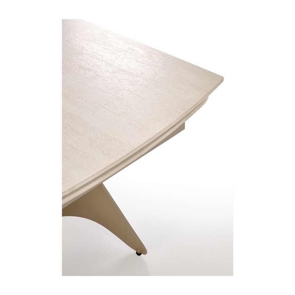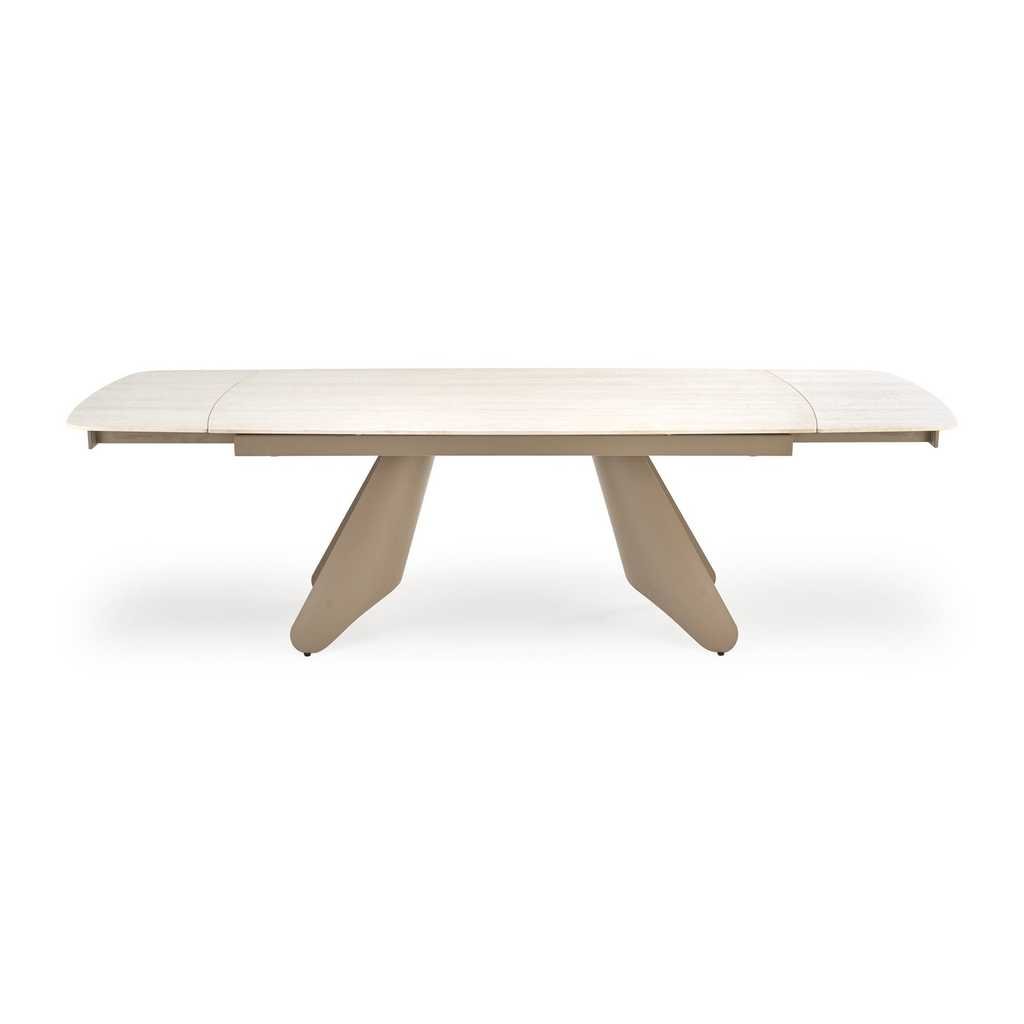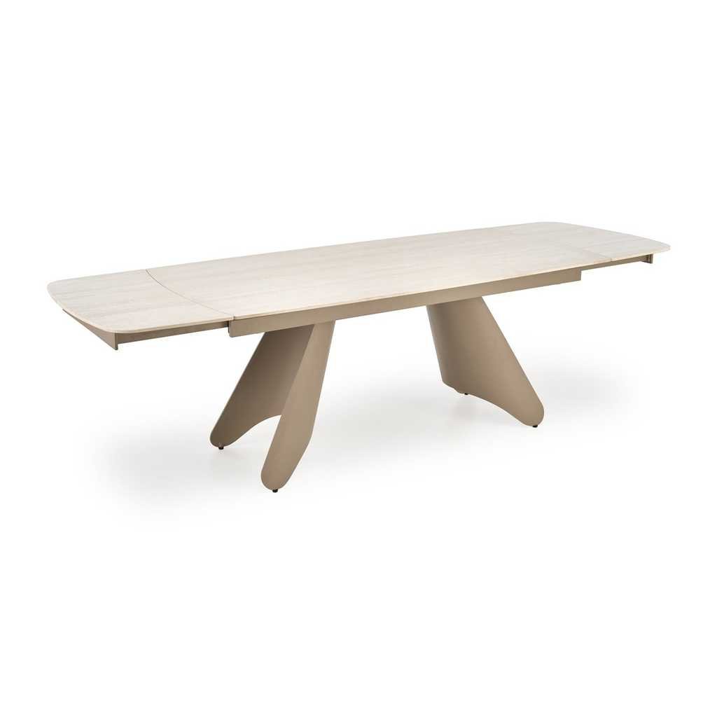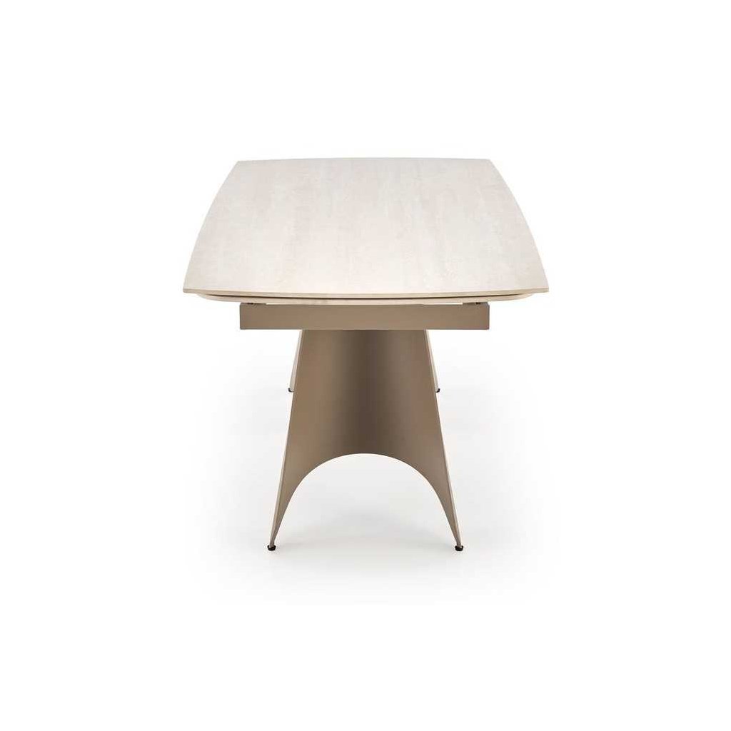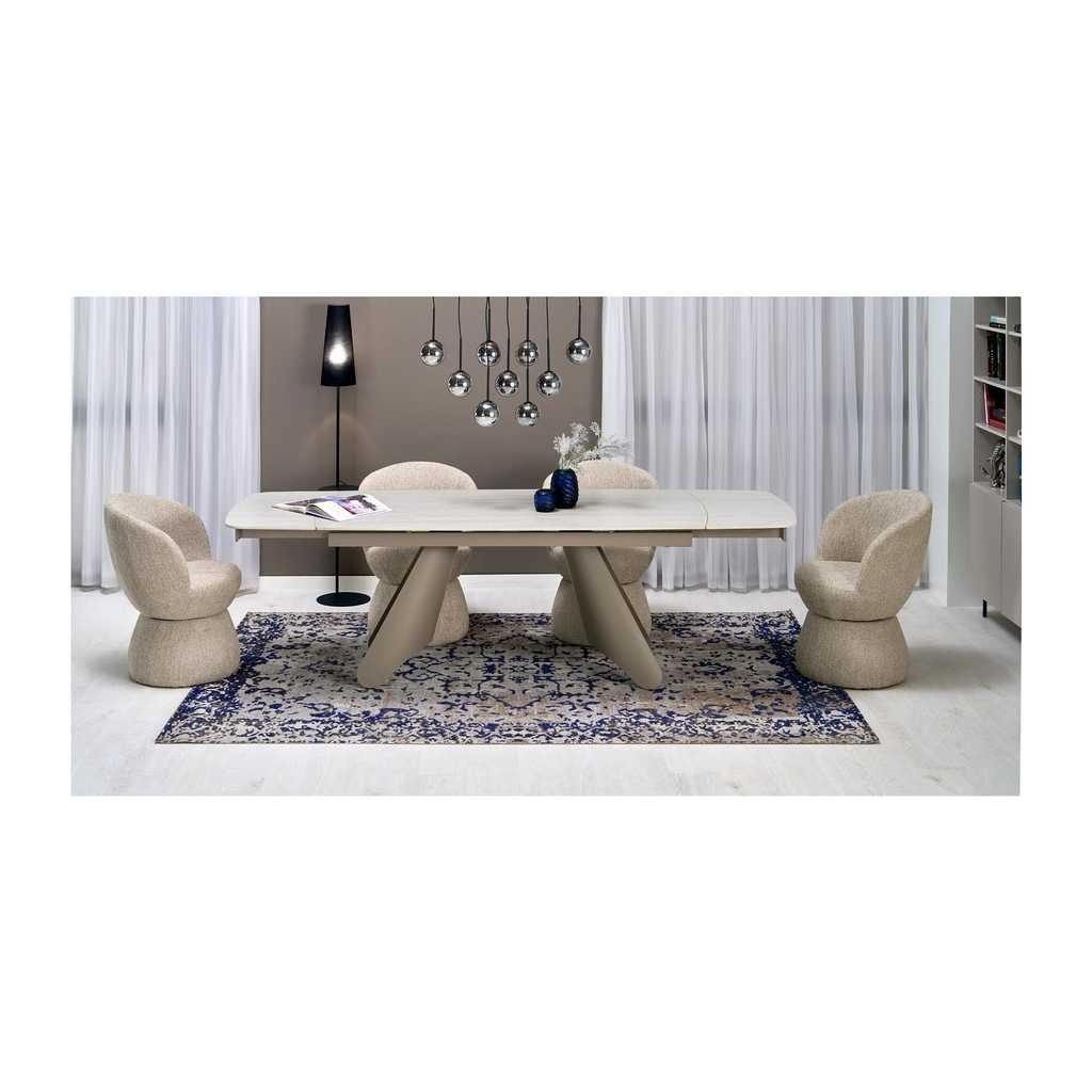 Az Abelard étkezőasztal egyszerre modern és funkcionális megoldás, amely ideális választás nagyobb családok vagy társasági összejövetelek számára. A kőből készült felső deszka és a fém alap biztosítja a tartósságot és a stabilitást, miközben a téglalap formájú kialakítás eleganciát csempész minden étkezőbe. Az asztal bővíthető, így akár 260 cm hosszúra is kinyitható, így 8 személy kényelmes étkezésére nyújt helyet.