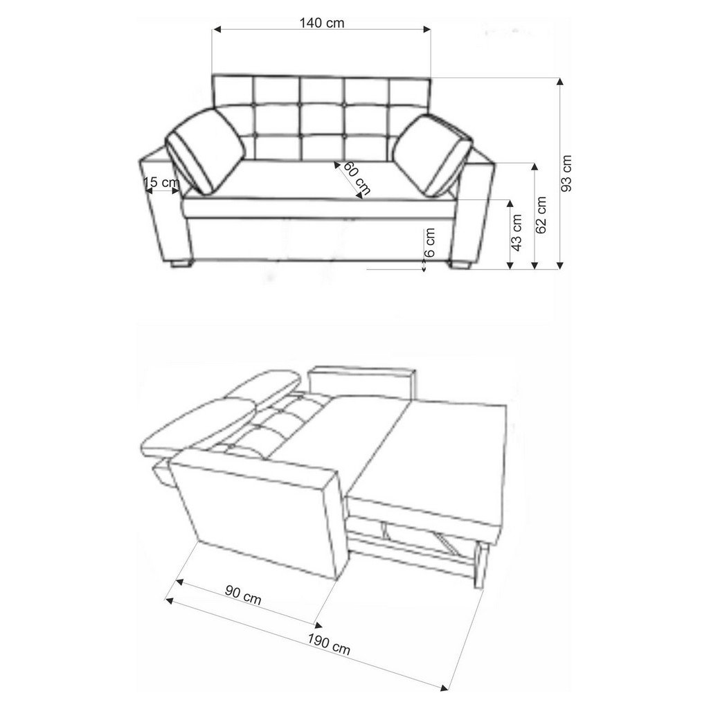 - Ülésmélység: 60 cm, ülés szélessége: 140 cm