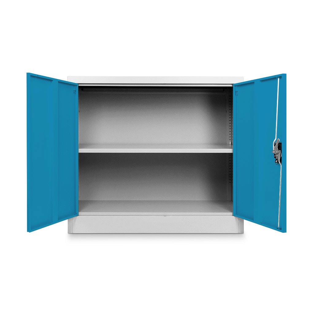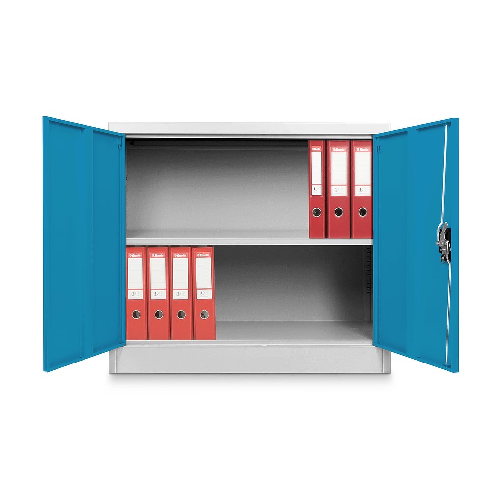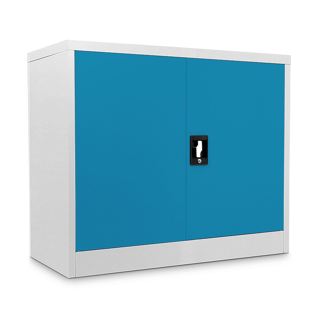Alacsony univerzális fémszekrény 90 x 40 x 80 cm, hengerzár, kék - ral 5012