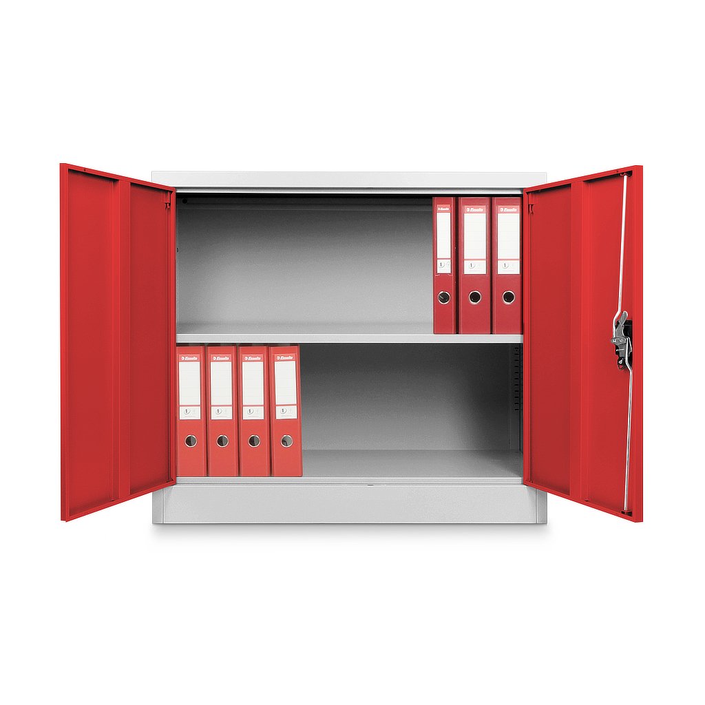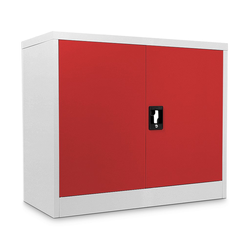 Alacsony univerzális fémszekrény 90 x 40 x 80 cm, hengerzár, piros - ral 3000