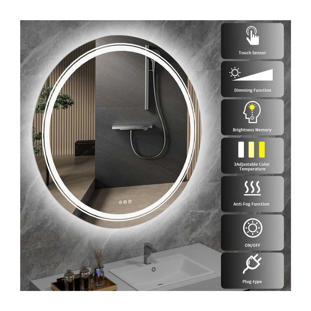 - Kör alakú tükör LED világítással