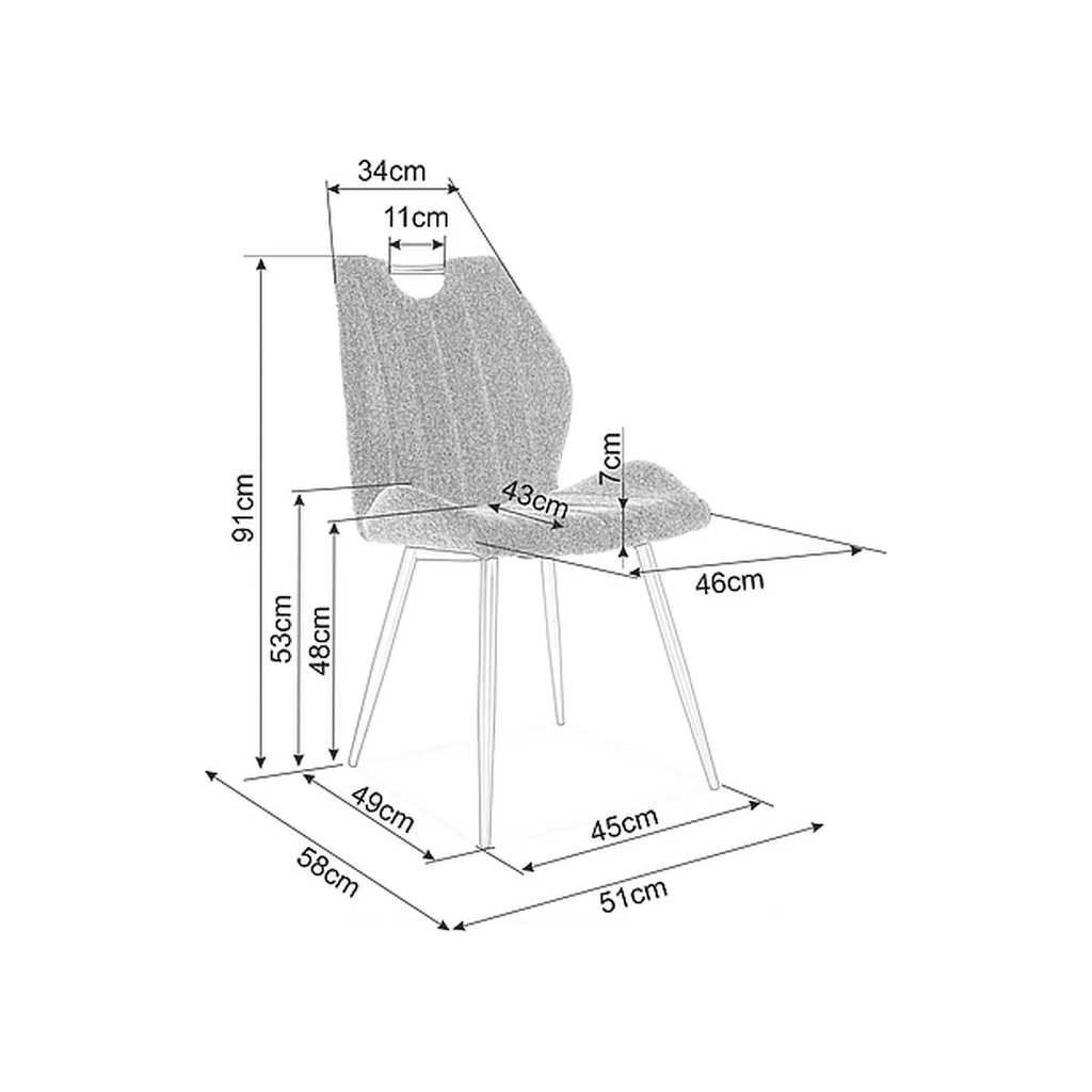 Az Arco II étkezőszék modern kialakításával és kényelmes ülőfelületével ideális választás minden étkezőbe. A szövetből készült ülés puha és tartós, míg a fém alap stabil és hosszú élettartamot biztosít. Ez a szék 120 kg teherbírású, így kényelmes és biztonságos használatot garantál. Praktikus méreteinek köszönhetően könnyen illeszkedik különböző térbeosztásokhoz.