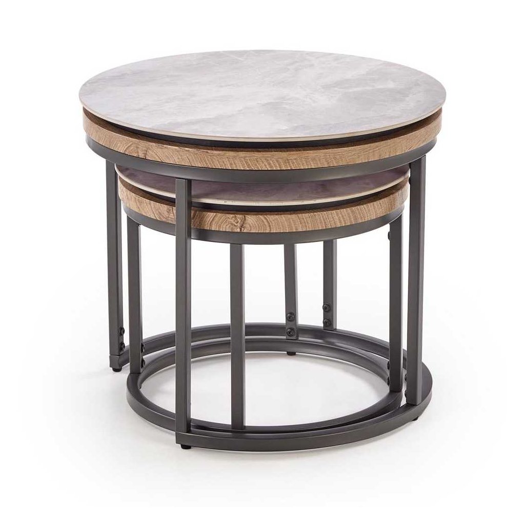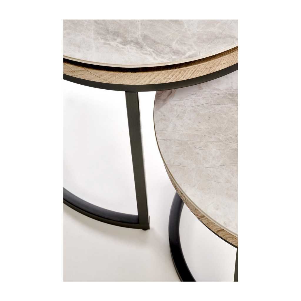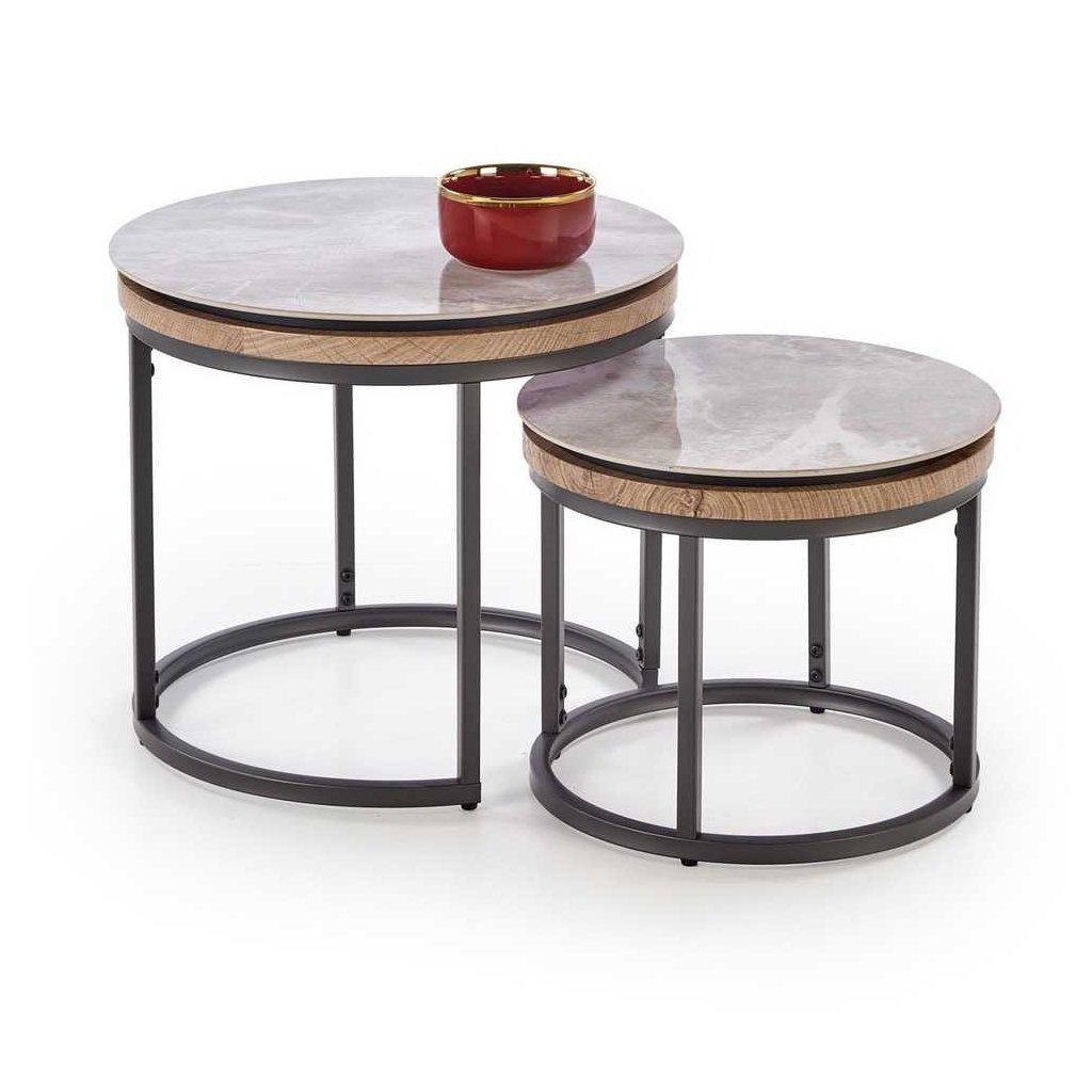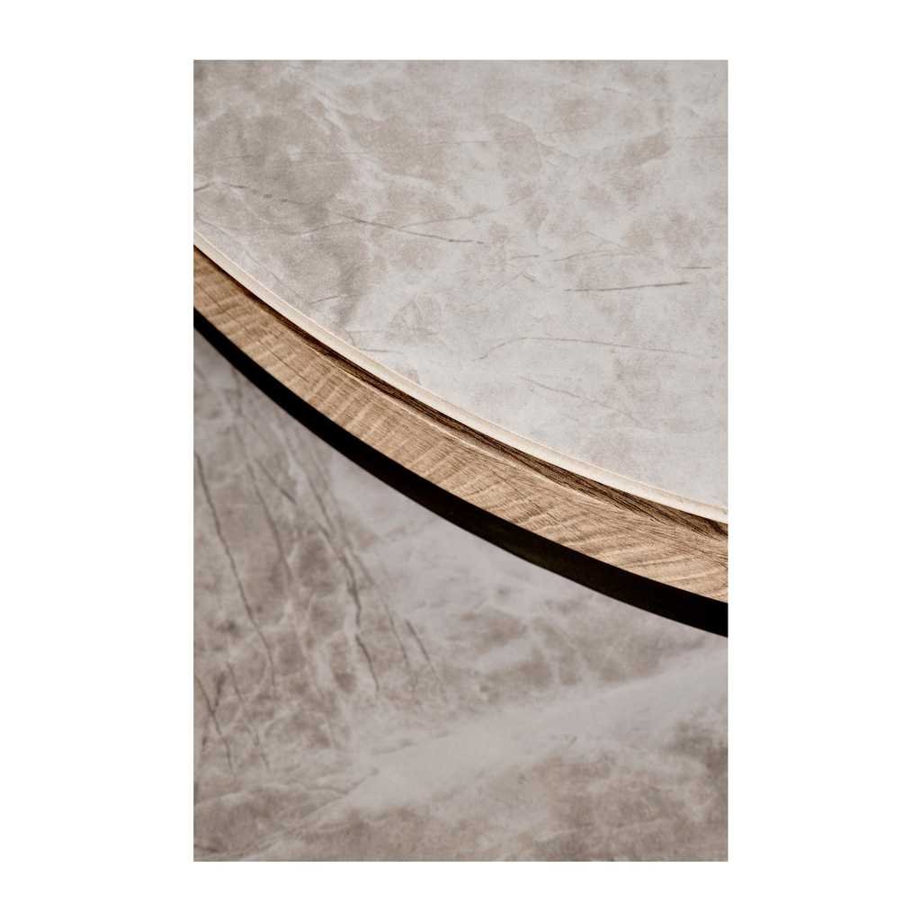 Az Avignon dohányzóasztal egy modern és stílusos kiegészítő, amely tökéletesen illeszkedik otthona bármelyik helyiségébe. A kör alakú asztallap fa és kő anyagok ötvözésével készült, ami egyedülálló megjelenést és tartósságot biztosít. Az erős fém alap stabilitást biztosít, miközben letisztult dizájnnal rendelkezik.