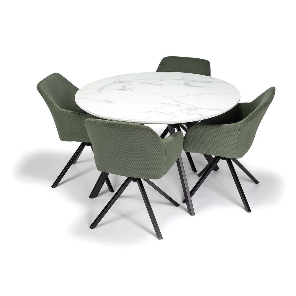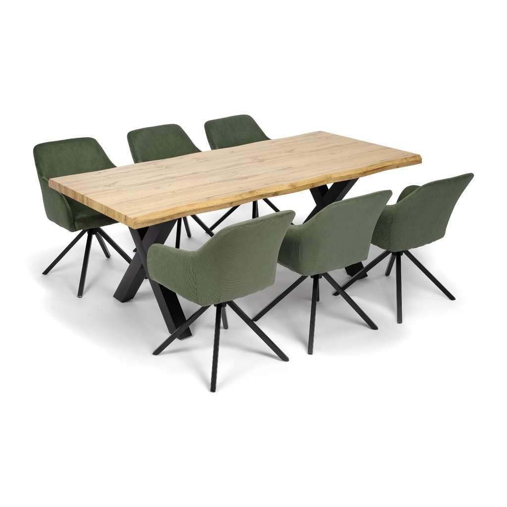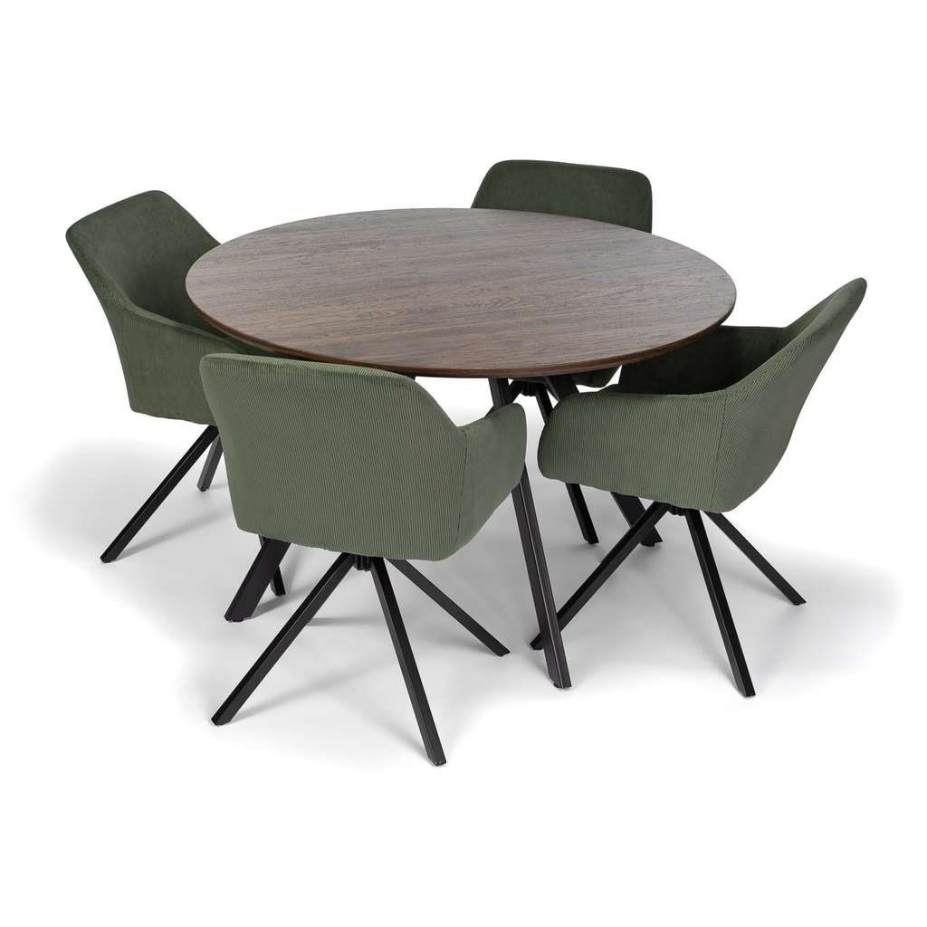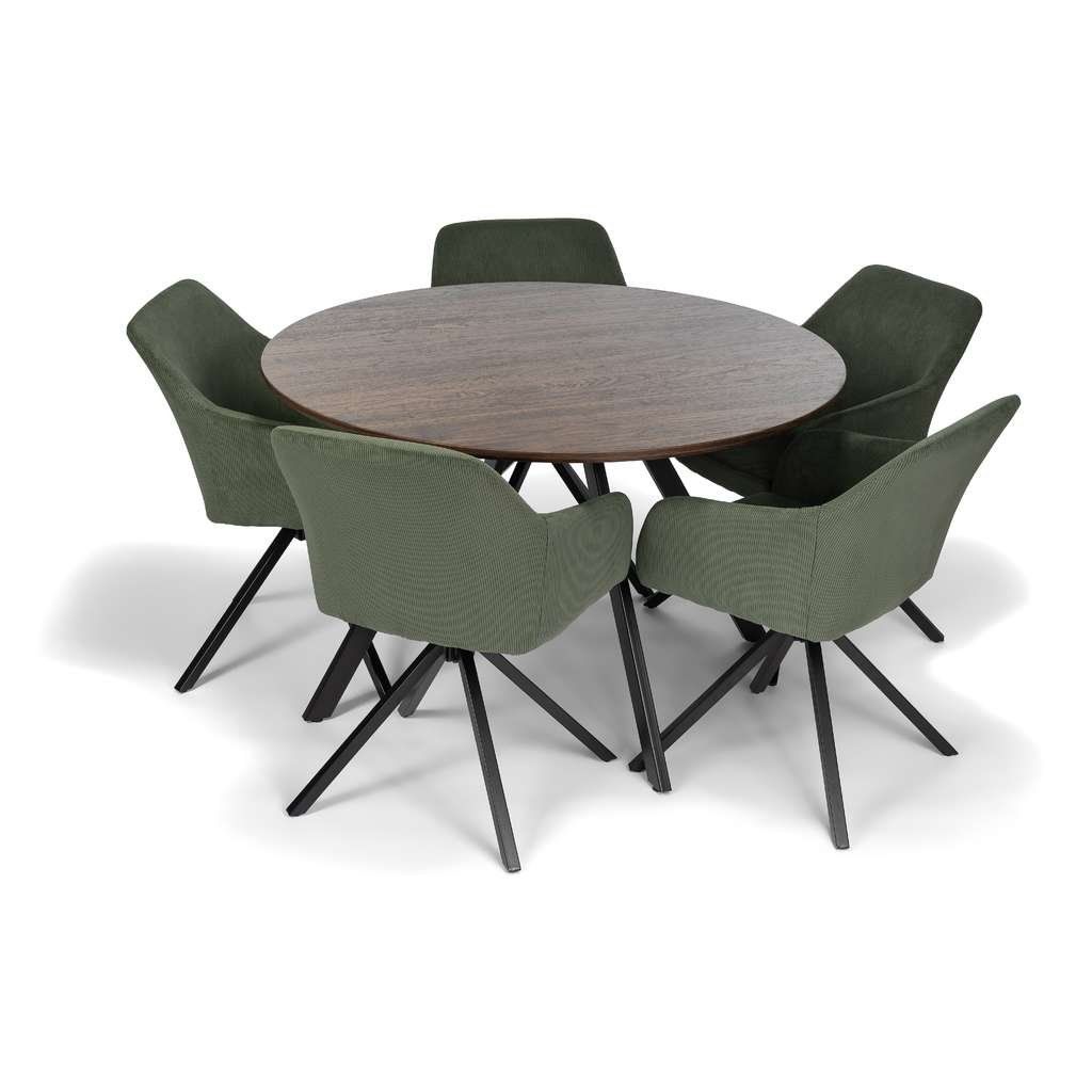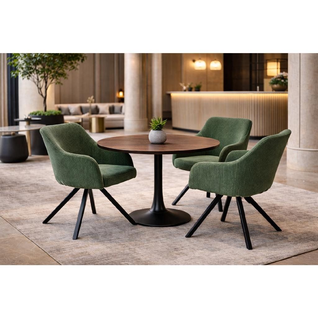 A forgatható lábak lehetővé teszik a könnyű és szabad mozgást, így egyszerűbben éri el az asztal körüli teret, a beépített karfák pedig további támogatást nyújtanak. Az ülés kombinált anyaga – a szövet és műbőr – nemcsak tartós, de szép megjelenést is kölcsönöz a bútornak.
