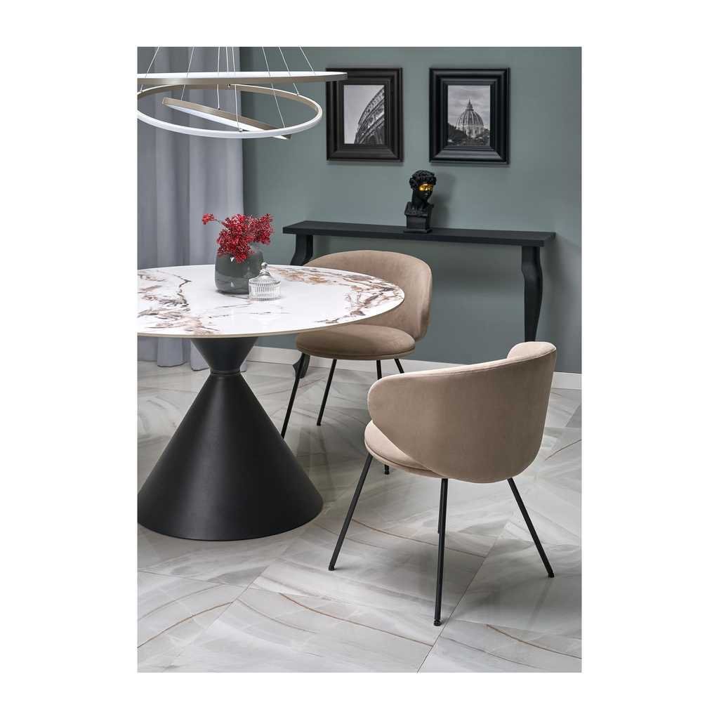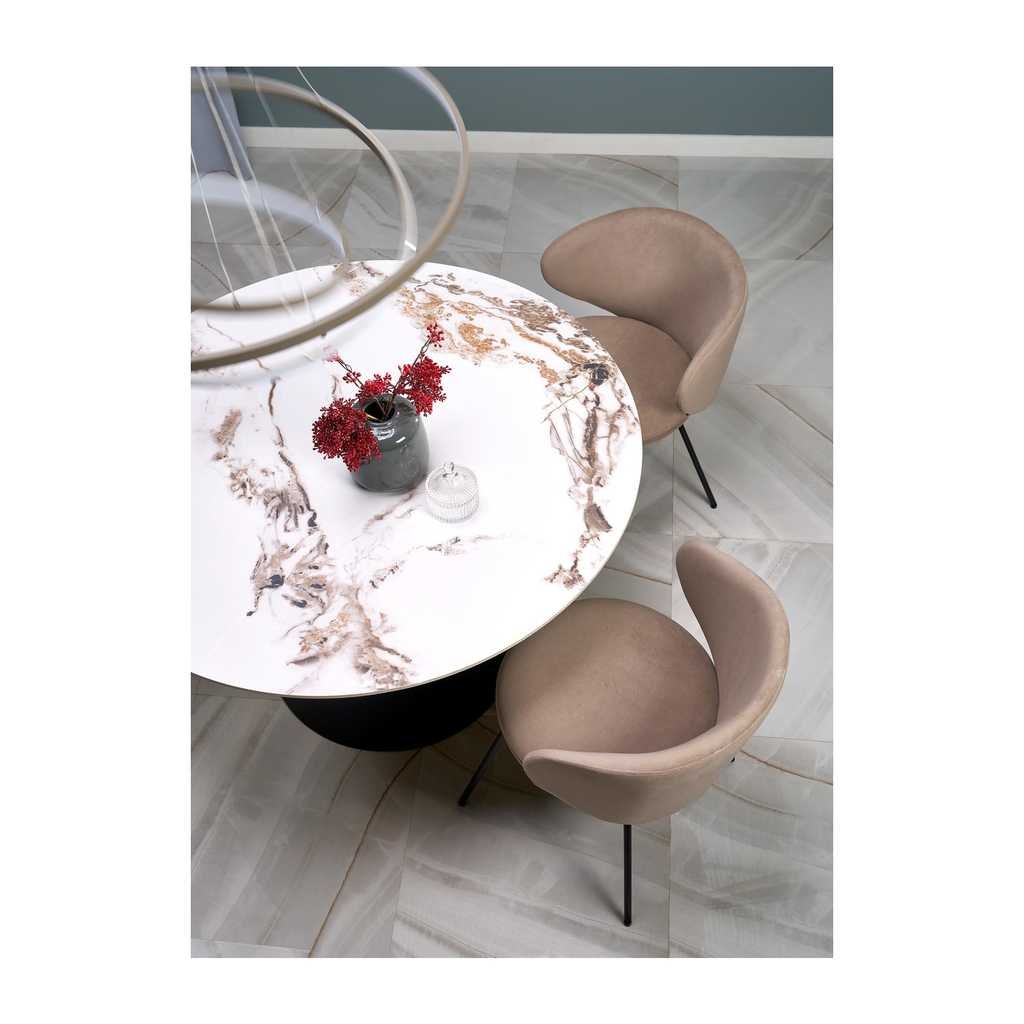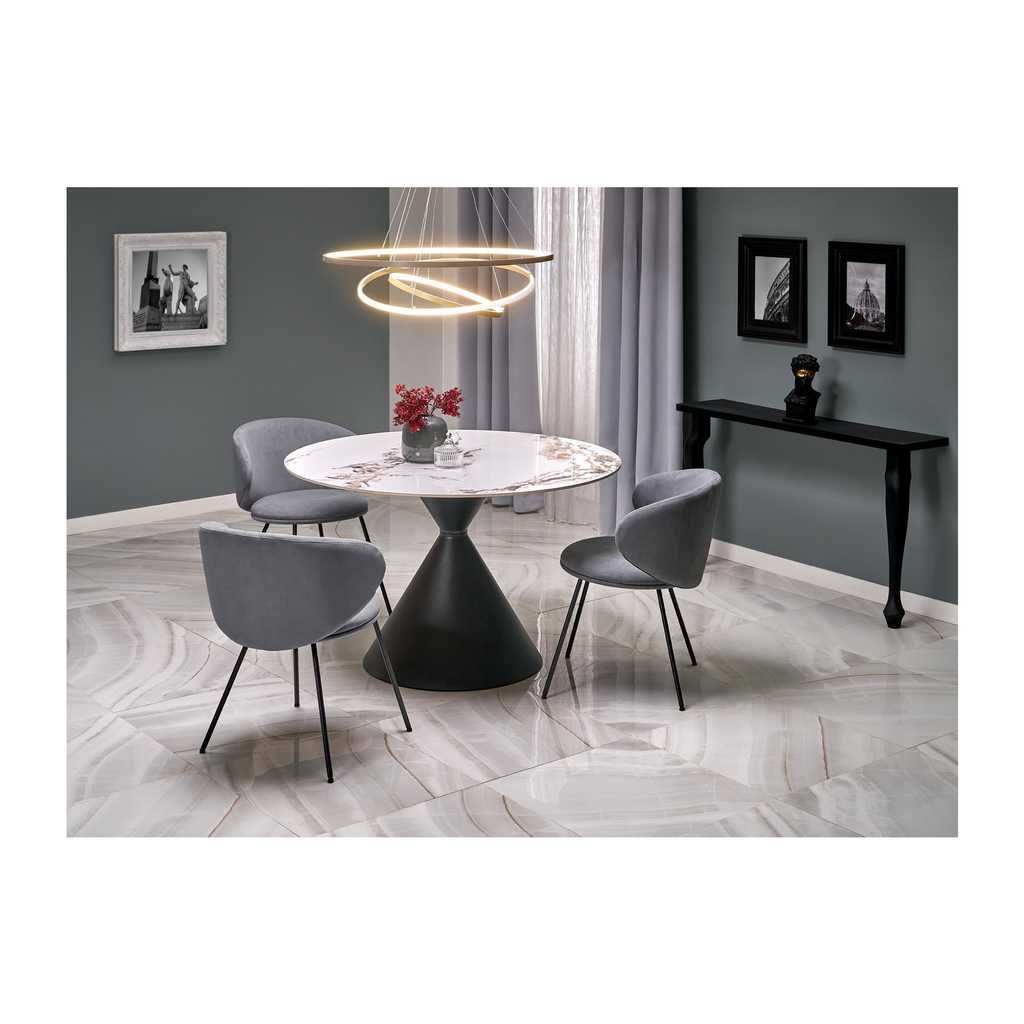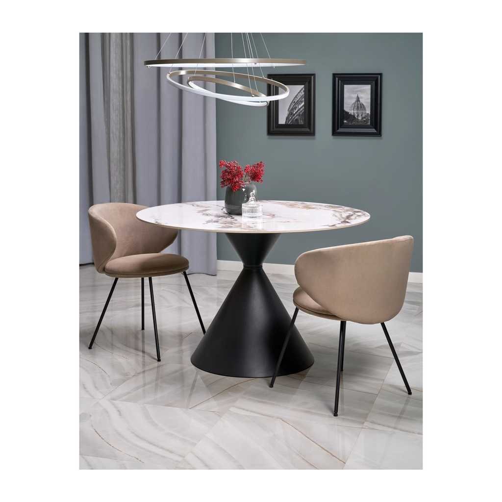 A Bangor étkezőasztal egy egyedi és stílusos darab, amely tökéletes választás lehet modern otthonokba. Kör alakjának köszönhetően ideális kisebb családi vagy baráti összejövetelekhez, akár 4 fő kényelmes elhelyezésére nyújt lehetőséget. Az asztallap kő anyagból készült, ami különlegesen tartós és elegáns megjelenést biztosít, míg a fém alap stabilitást és hosszú élettartamot garantál.