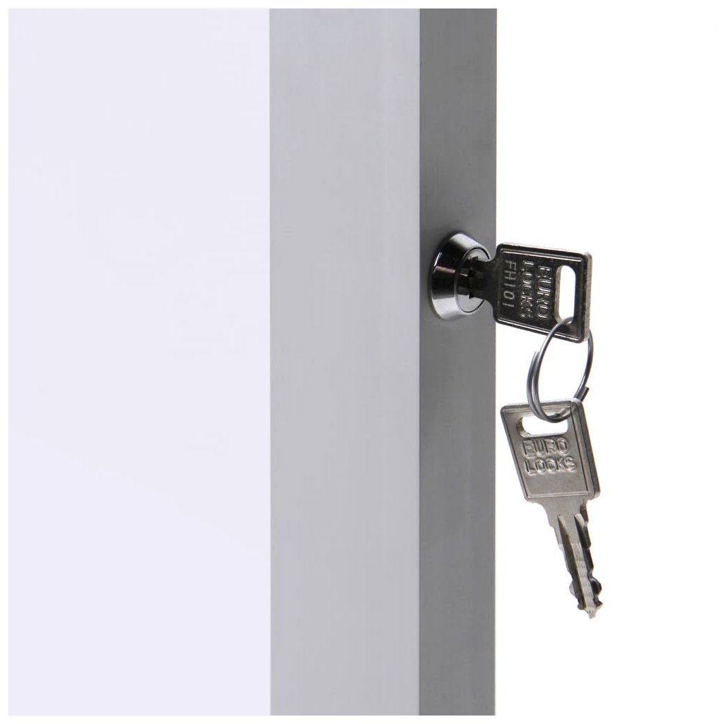 A vitrin biztonságosan lezárható a beépített zár, amely megbízhatóan védi a tartalmat.