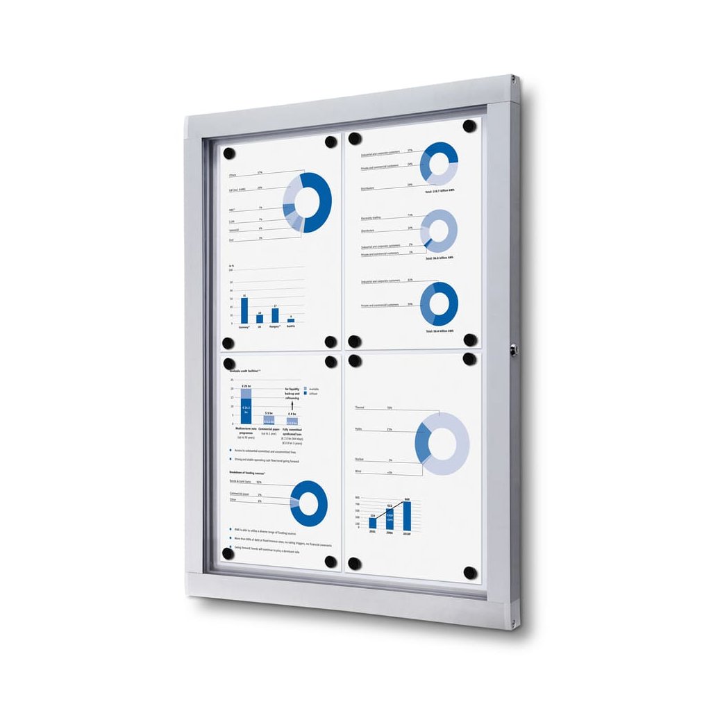 A 4 x A4 formátumú információs vitrin mágneses felülettel rendelkezik. A kiválasztott dokumentumokat kényelmesen rögzítheti mágnesekkel, és mindig szem előtt tarthatja őket.