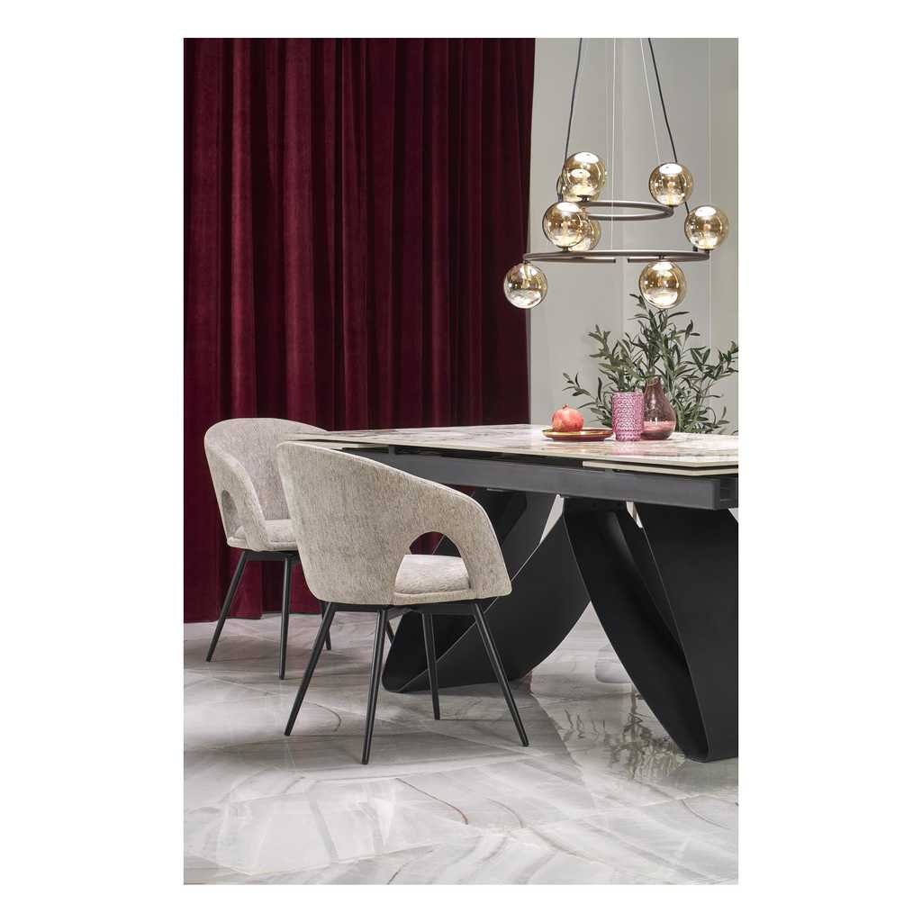 A Brianna étkezőszék stílusos és kényelmes megoldást kínál ebédlőjébe vagy nappalijába. Masszív fém vázzal és puha szövet ülőfelülettel rendelkezik, amely tartós használatot biztosít. Ez a szék elegáns megjelenésével és ergonomikus kialakításával kellemes ülést nyújt, miközben 100 kg-os terhelhetőségével megbízhatóságot garantál. A szék nem egymásra rakható, így különálló darabként funkcionál, ideális olyan helyekre, ahol az egyedi komfort előnyös.