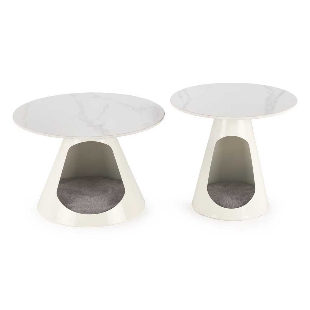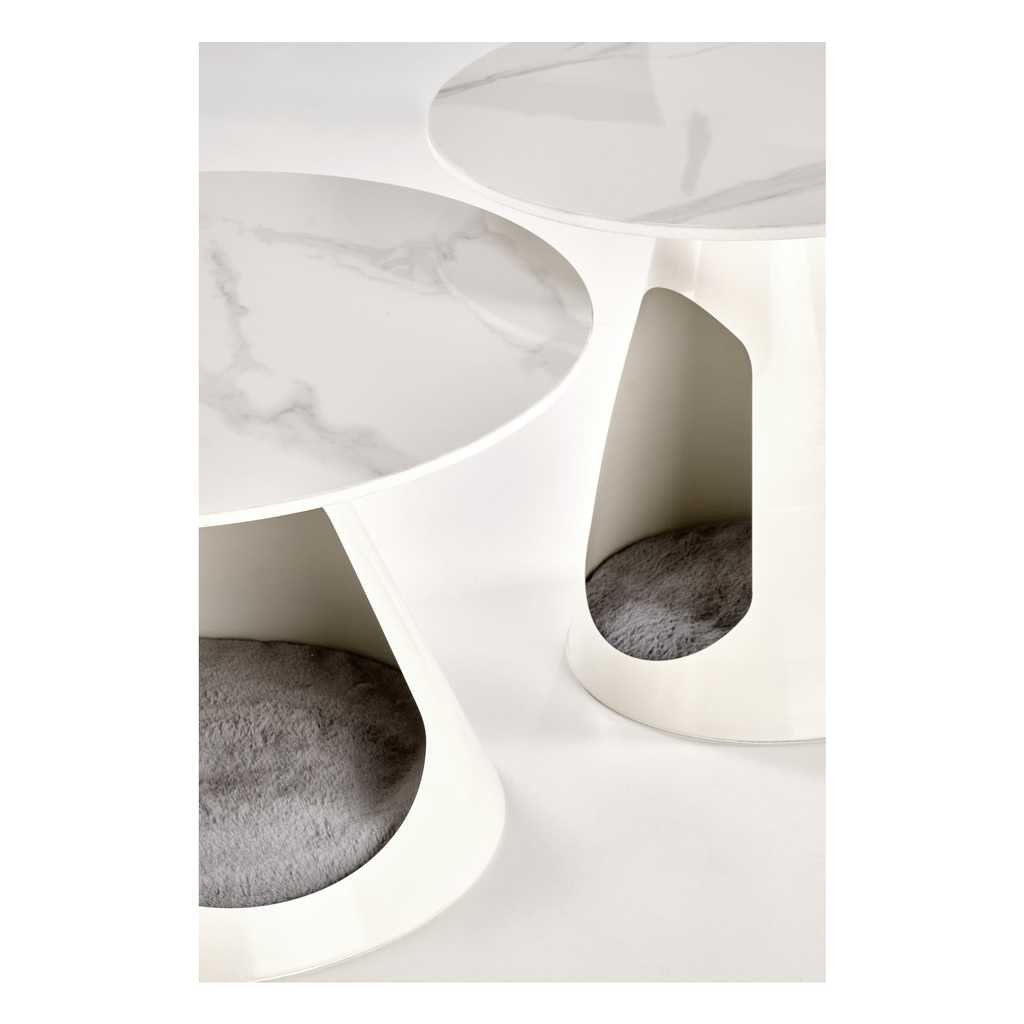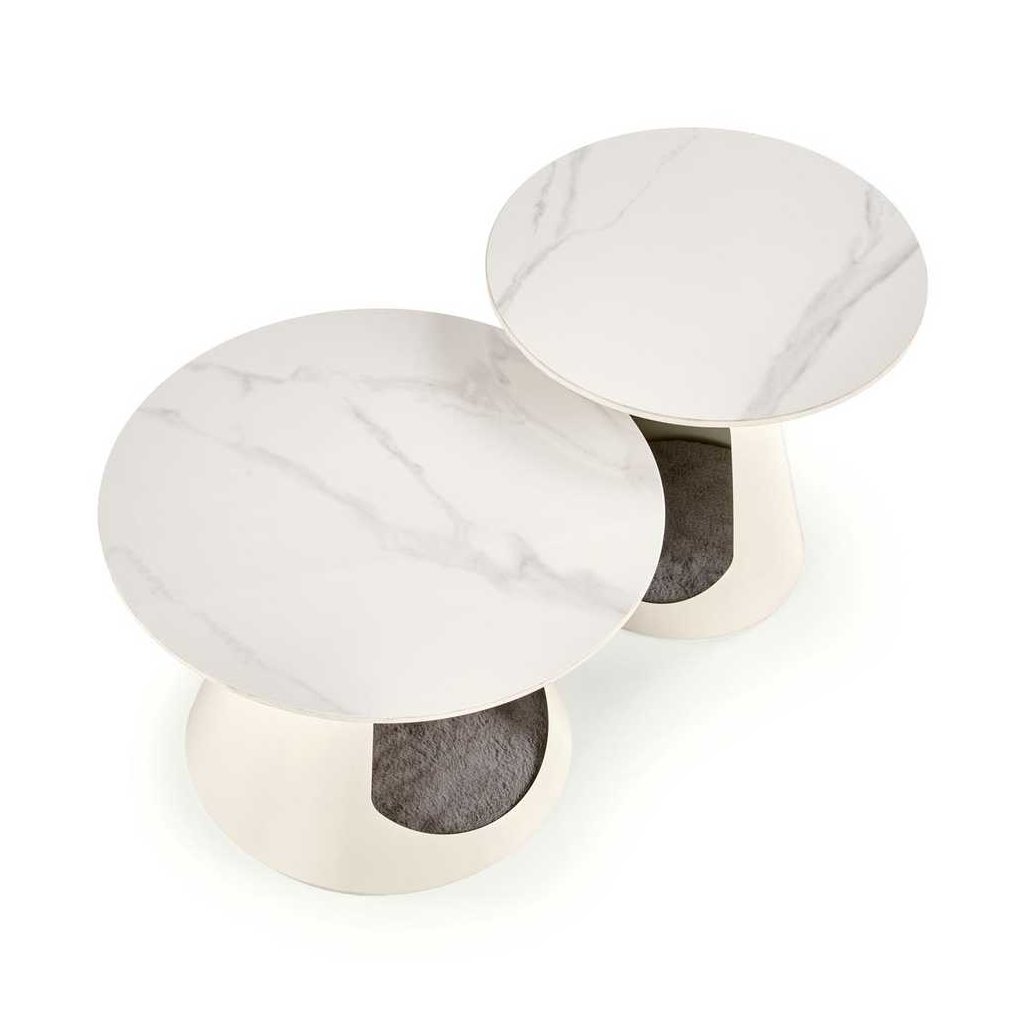 A Bryson dohányzóasztal elegáns és modern megjelenésével tökéletes kiegészítője lehet bármely nappalinak vagy közösségi térnek. Különleges kőből készült felső deszkája nemcsak tartós, hanem könnyen tisztán tartható, míg a stabil, fém alap biztosítja a megbízható tartást. A kör alakú forma harmóniát és stílust visz az otthonába.