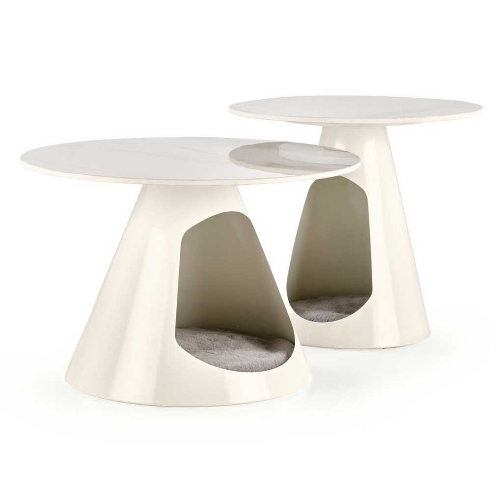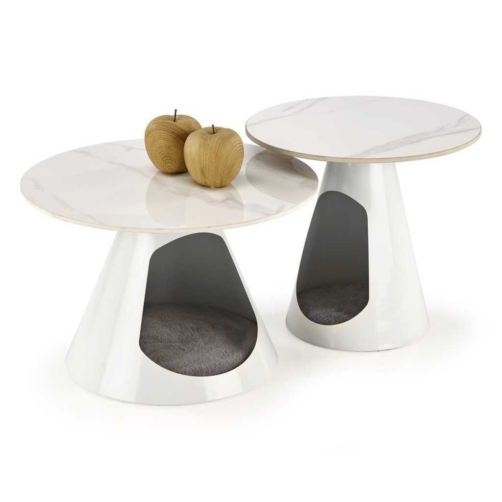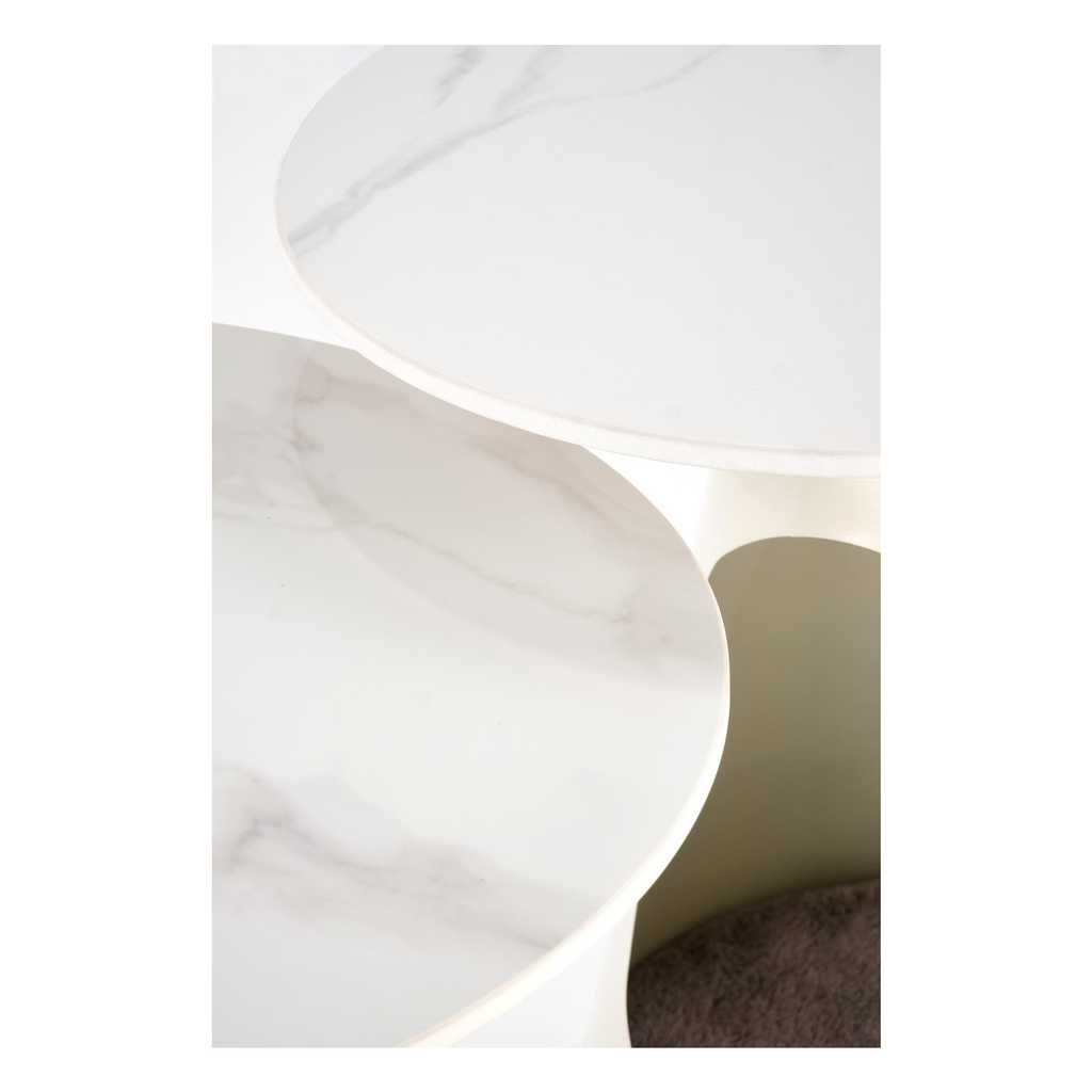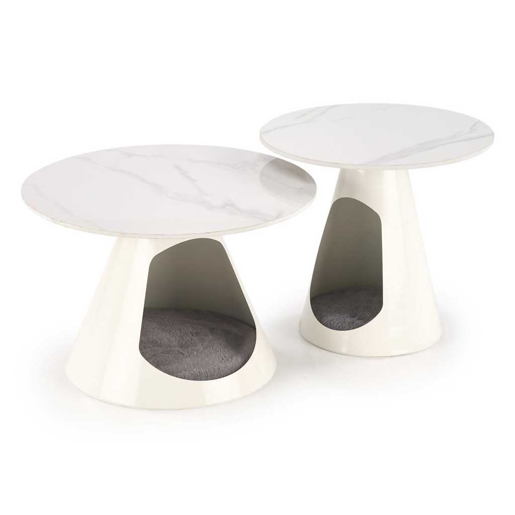A Bryson dohányzóasztal elegáns és modern megjelenésével tökéletes kiegészítője lehet bármely nappalinak vagy közösségi térnek. Különleges kőből készült felső deszkája nemcsak tartós, hanem könnyen tisztán tartható, míg a stabil, fém alap biztosítja a megbízható tartást. A kör alakú forma harmóniát és stílust visz az otthonába.