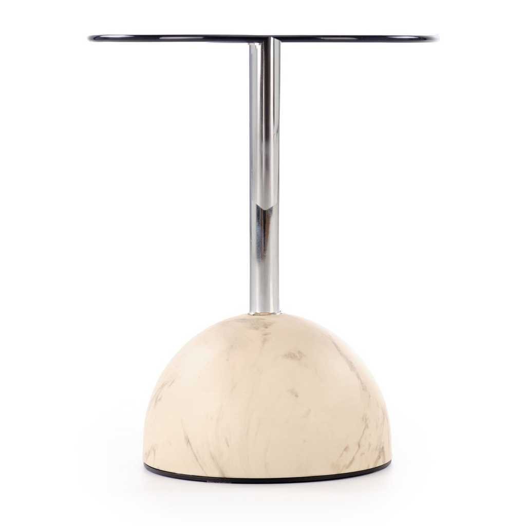 Az asztal alapja fém anyagból készült, ami stabilitást és tartósságot garantál, miközben könnyű szerkezete miatt könnyen mozgatható. Kompakt méretei (40 cm hossz, 40 cm mélység és 51 cm magasság) révén ideális kisebb terekbe is, ahol a helytakarékosság fontos szempont.