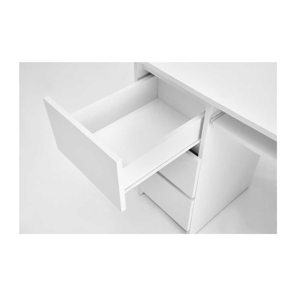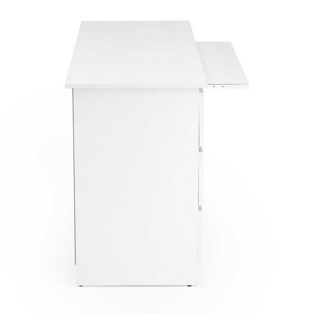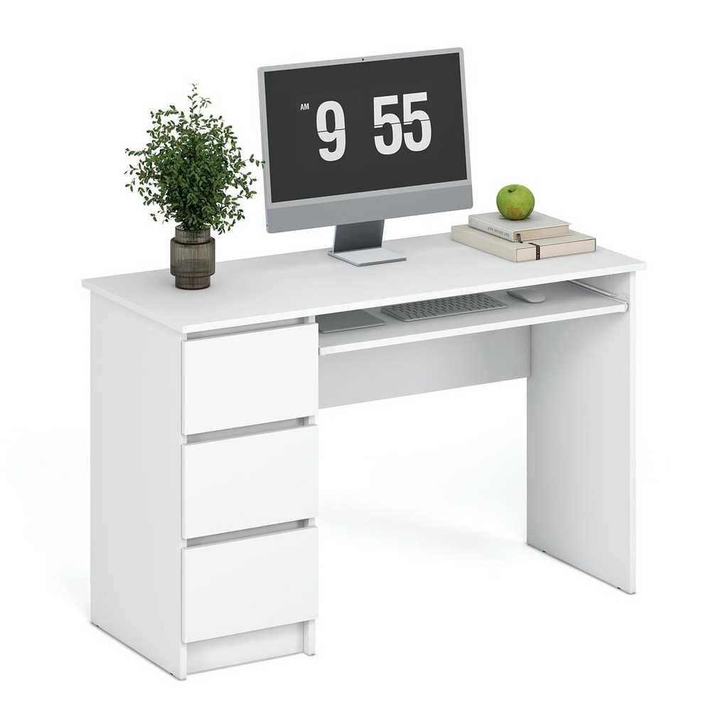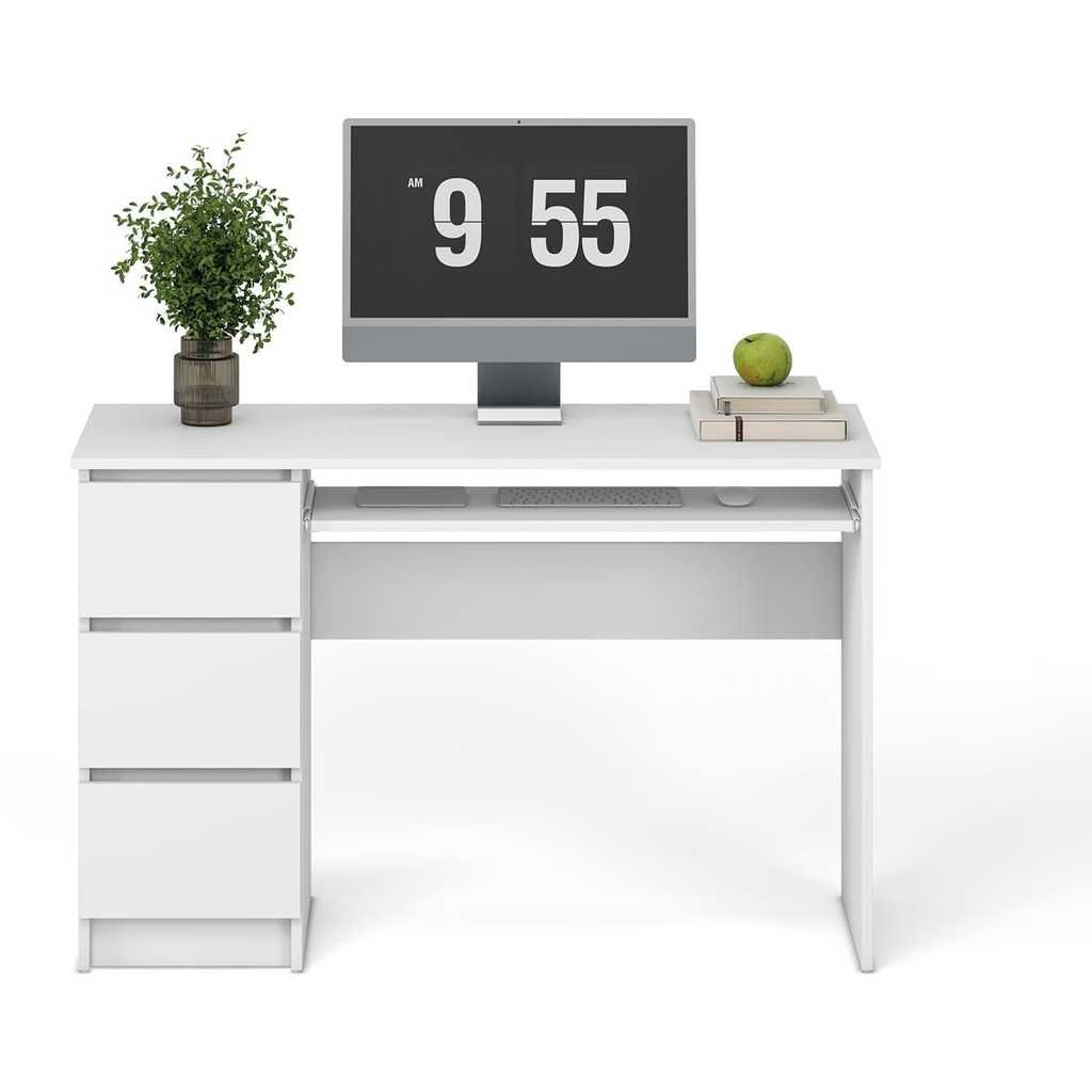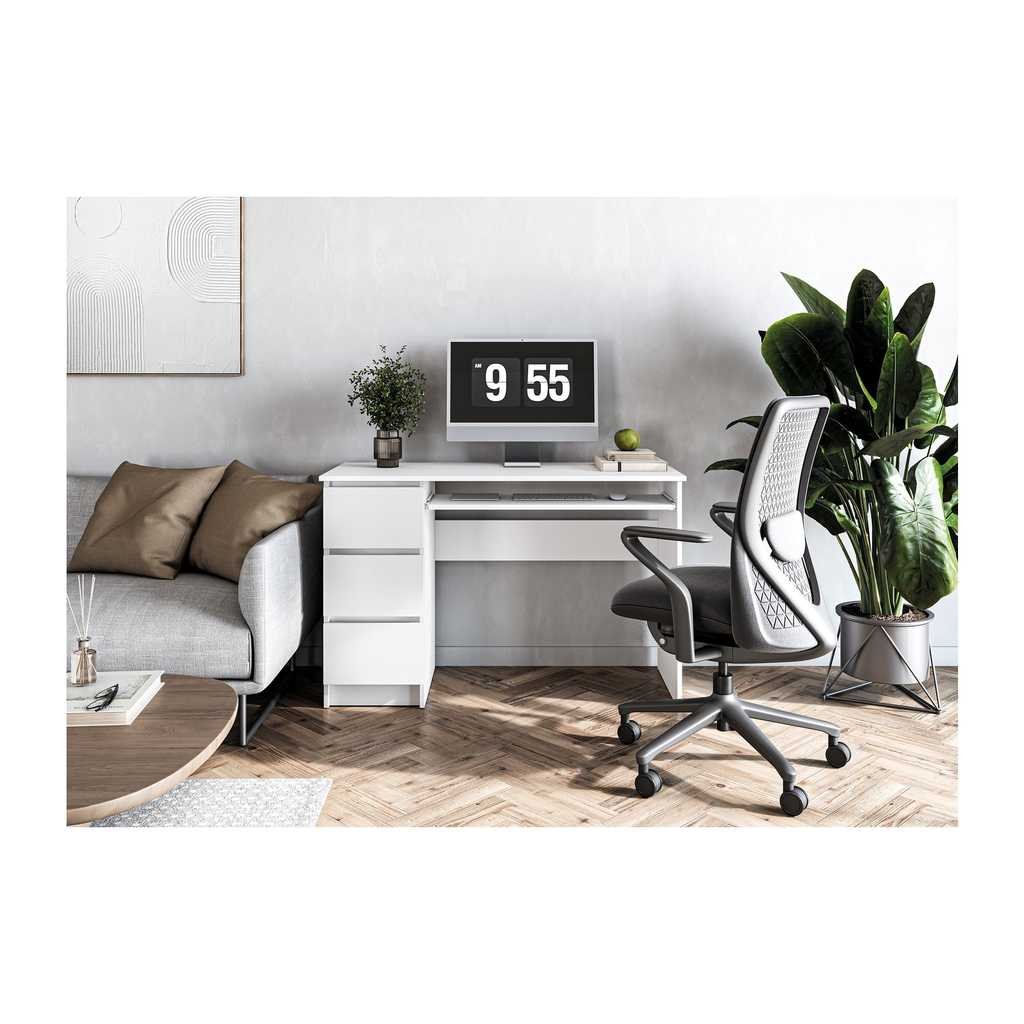 A beépített három fiók lehetőséget ad kisebb tárgyak, dokumentumok rendszerezett tárolására, így mindig kéznél tarthatja azokat. A kihúzható billentyűzet-tartó kényelmes munkavégzést tesz lehetővé, miközben helyet takarít meg az asztallapon.