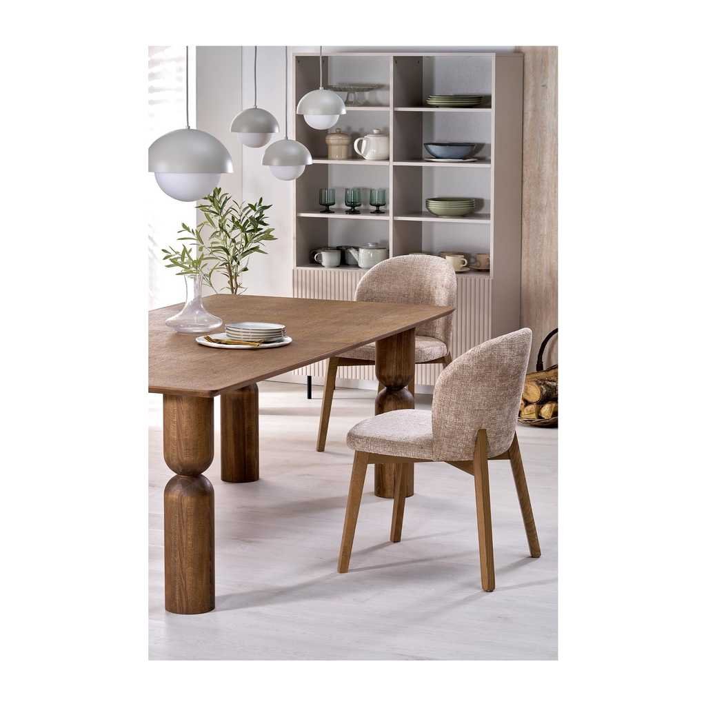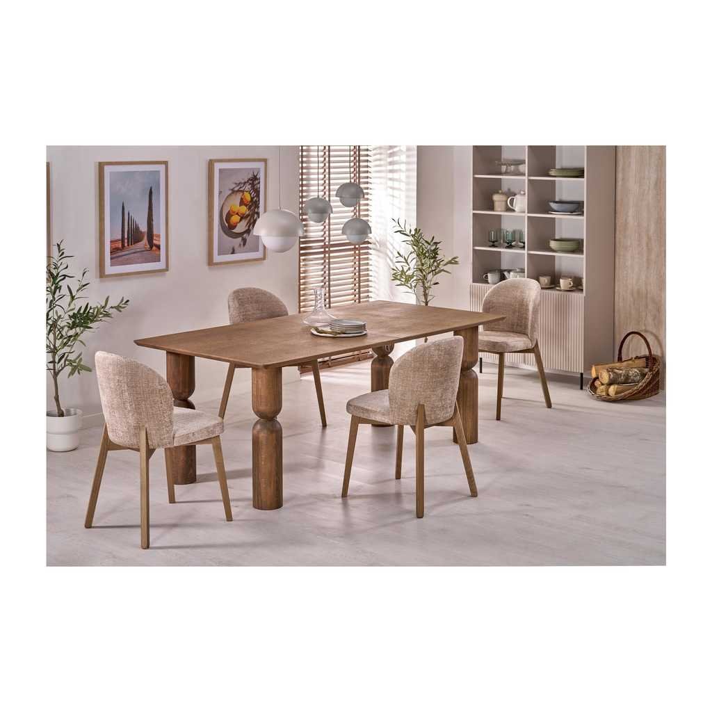 Ez az asztal robusztus kialakítású, és stabil lábai biztosítják a hosszú élettartamot és megbízhatóságot. A téglalap alakja ideális a helytakarékos elrendezéshez, miközben nagy felületet kínál az étkezéshez vagy egyéb tevékenységekhez. Az asztal felülete fa anyagú, így kellemes és meleg légkört teremt otthonában.