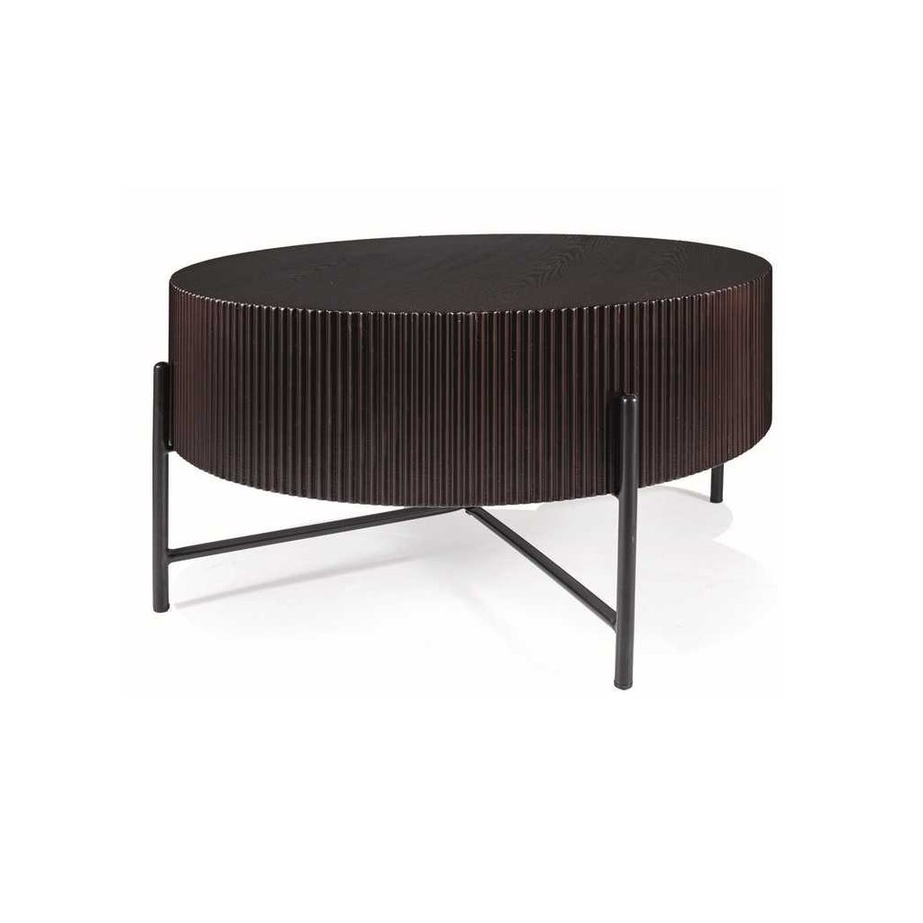 A Crotone dohányzóasztal tökéletes választás minden modern otthonba, ahol a stílus és a funkcionalitás egyaránt fontos. Kör alakú kialakítása harmonikusan illeszkedik a térbe, miközben a fa felső deszka és a fém alap stabil és tartós szerkezetet biztosít.