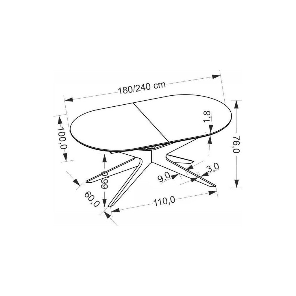 A Davis étkezőasztal egy modern és funkcionális megoldás minden étkezőbe. Elegáns ellipszis alakú asztallapja fából készült, amely természetes melegséget hoz otthonába, míg masszív fém alapja biztos stabilitást garantál. Az asztal hossza 180 cm, de könnyedén bővíthető akár 240 cm-re, így akár 8 fő is kényelmesen elfér körülötte, ideális nagycsaládosok vagy vendégek fogadásához.