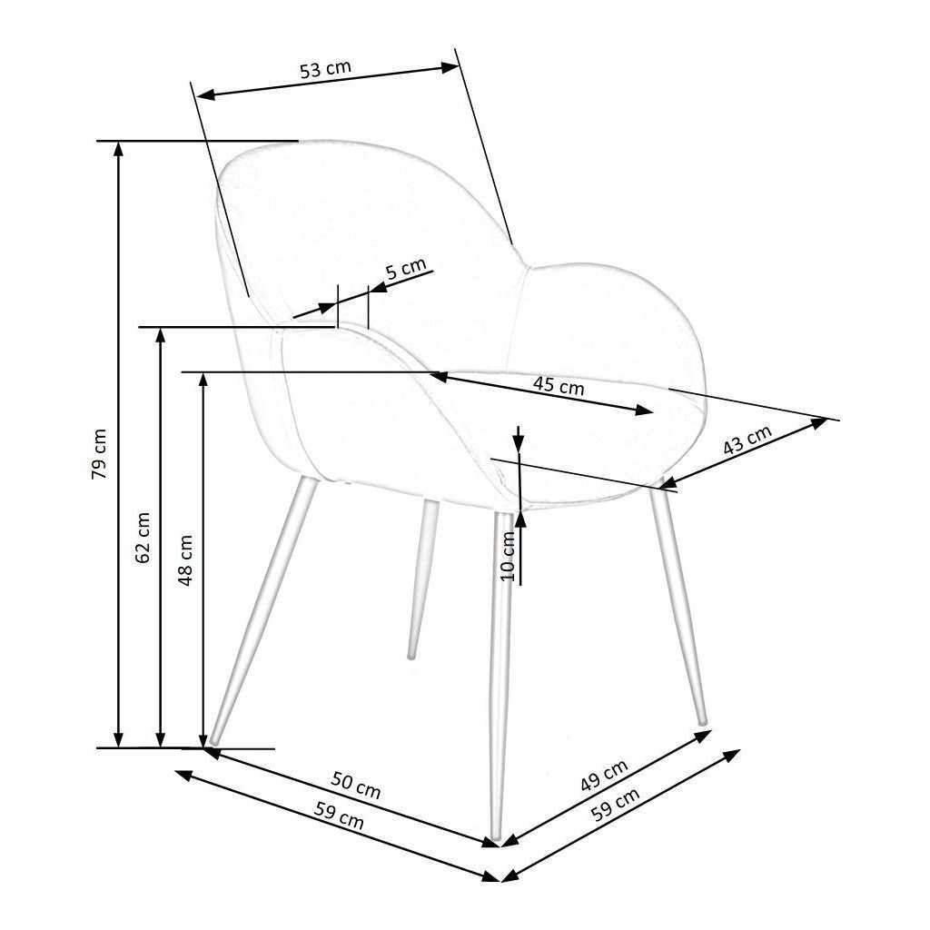 A Delila étkezőszék tökéletes választás, ha kényelmes és tartós ülőalkalmatosságot keres otthonába vagy irodájába. Erős fém váza biztosítja a stabilitást, míg puha szövet kárpitozása komfortos ülést kínál hosszabb időre is. Modern kialakításával és praktikus méreteivel bármilyen étkező vagy iroda hangulatához illik.