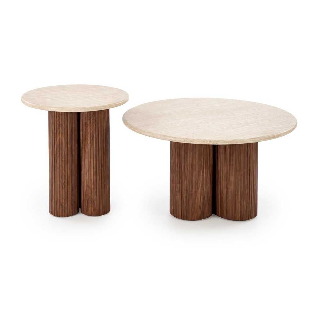 A Donovan dohányzóasztal elegáns kör alakú formájával és természetes fa anyagával igazi stílusos kiegészítője lehet otthonának. Stabil fa alapja és masszív felső deszkája biztosítja a hosszú távú használatot, miközben praktikus méretei révén könnyen illeszthető különböző helyiségekbe. Ez a dohányzóasztal ideális választás mind azoknak, akik kedvelik a természetes anyagokat és a letisztult, mégis figyelemfelkeltő design-t.