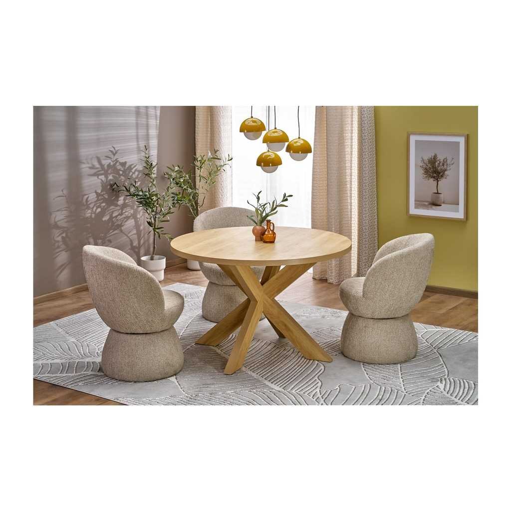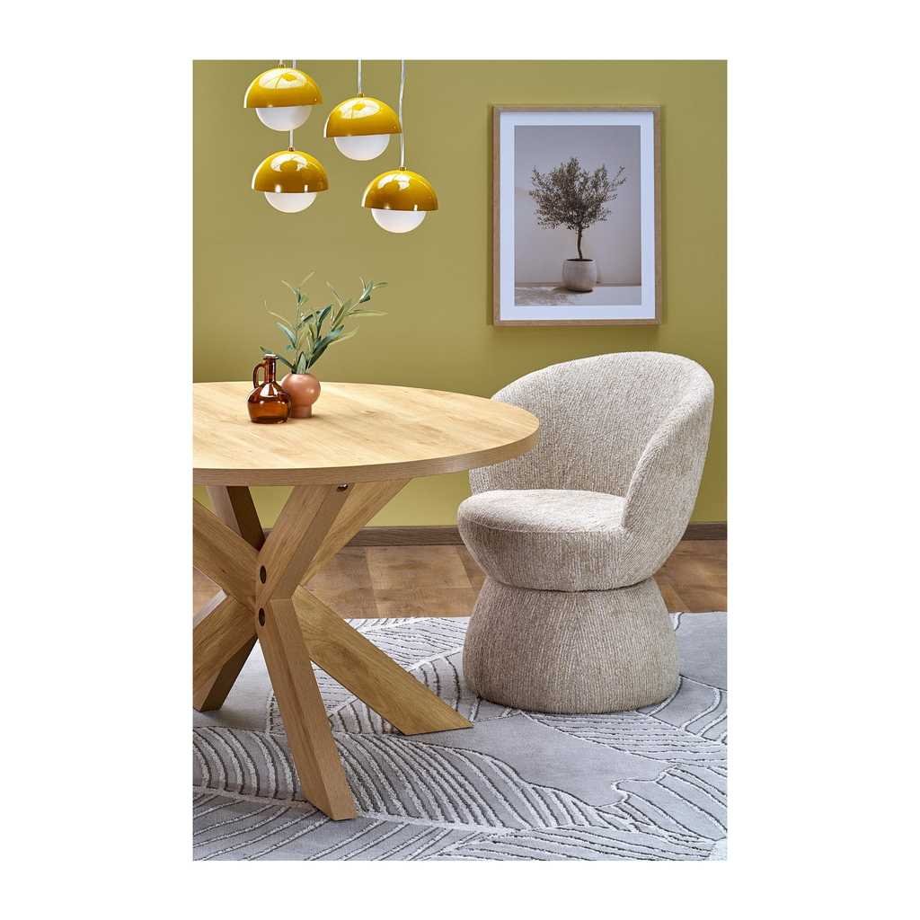 Az Elmont étkezőasztal egy stílusos és minőségi bútor, amely tökéletes választás kisebb családi étkezésekhez vagy baráti összejövetelekhez. Kör alakjának köszönhetően barátságos légkört teremt, és akár négy személy számára biztosít kényelmes helyet. Kiválóan alkalmas otthoni használatra, köszönhetően a masszív fa anyaghasználatnak, amely tartósságot és stabilitást garantál.
