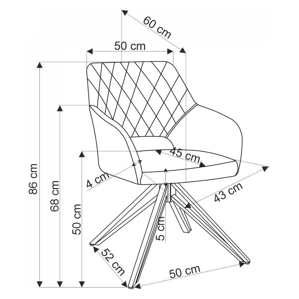 - Méretek: szélesség 60 cm, mélység 57 cm, magasság 86 cm