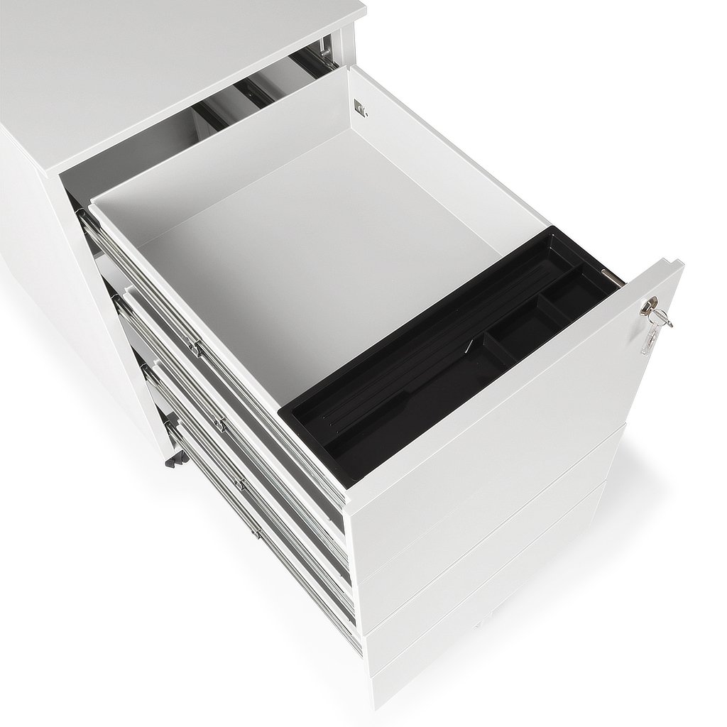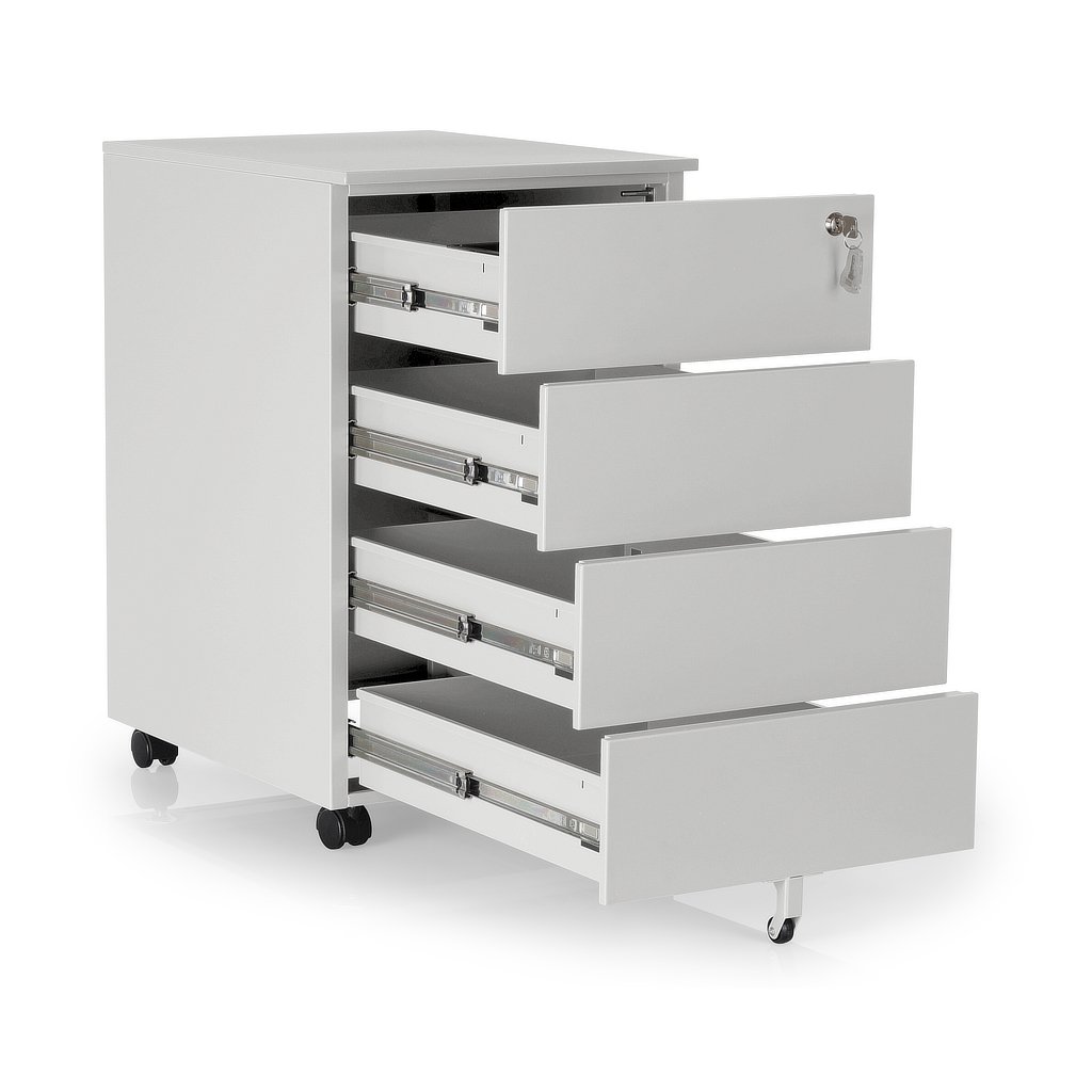 Ez a praktikus mobil fém konténer ideális választás irodákba vagy dolgozószobákba, ahol fontos a rendezettség és a könnyű hozzáférés. Négy fiókjával elegendő helyet biztosít dokumentumok és egyéb munkaeszközök rendszerezésére. Masszív fém szerkezetének köszönhetően hosszú élettartammal és strapabírással rendelkezik, amihez egy 20 éves garancia is társul.