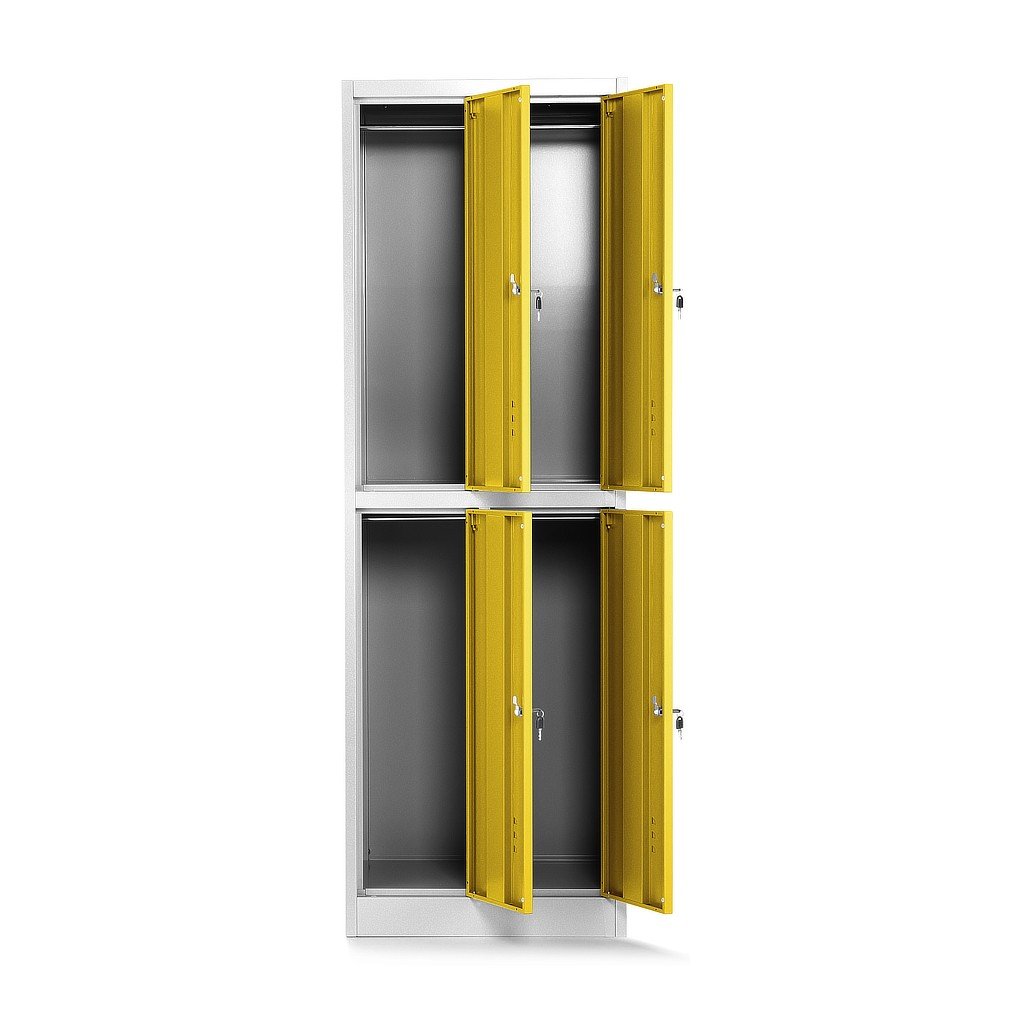 Fém öltözőszekrény - 4 dobozok, 60 x 45 x 185 cm, hengerzár, sárga - ral 1023