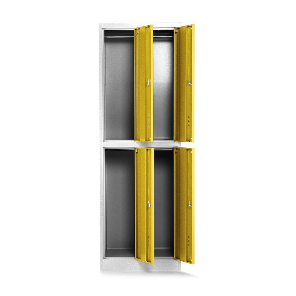 Fém öltözőszekrény - 4 dobozok, 60 x 45 x 185 cm, lakathoz zár, sárga - ral 1023