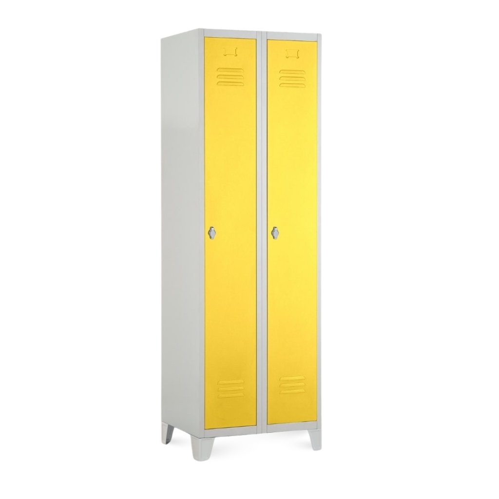 Fém szekrény, 60 x 50 x 190 cm, fix lábakkal, lakathoz zár, sárga - ral 1023
