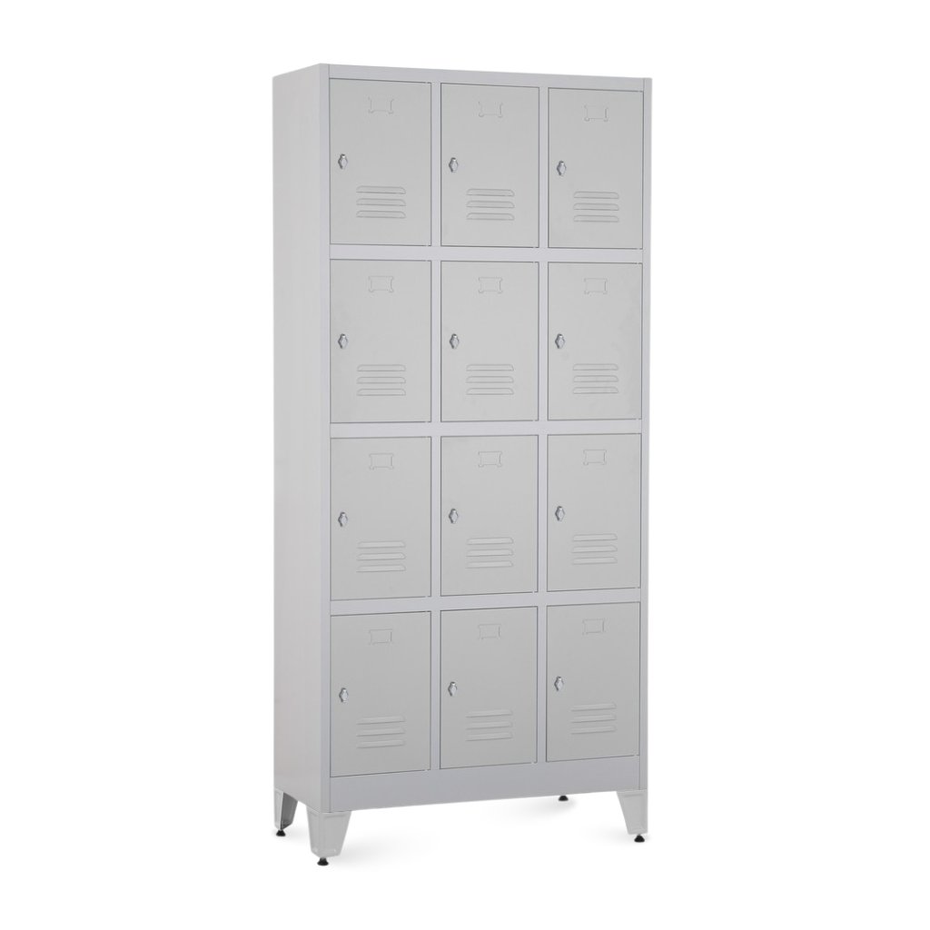 Ez a masszív fém szekrény 12 különálló dobozzal rendelkezik, amelyek ideálisak személyes vagy munkahelyi tárgyak tárolására. A tartós fém váznak és az erős fémlemez vastagságnak köszönhetően megbízható és hosszú élettartamú. A szekrény lábakkal van ellátva, melyek állíthatóak, így akár apró egyenetlenségek is kiegyenlíthetők az optimális stabilitás érdekében.