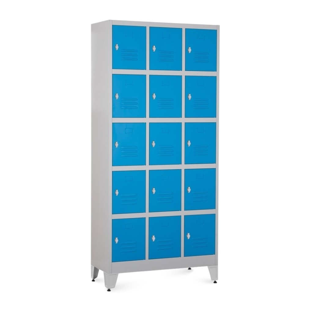 Fém szekrény - 15 doboz, 90 x 40 x 196,5 cm, helyreigazítással, lakathoz zár, kék - ral 5012