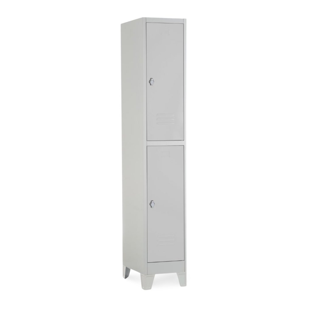 Fém szekrény - 2 doboz, 38 x 45 x 195 cm, fix lábakkal, lakathoz zár, világos szürke - ral 7035