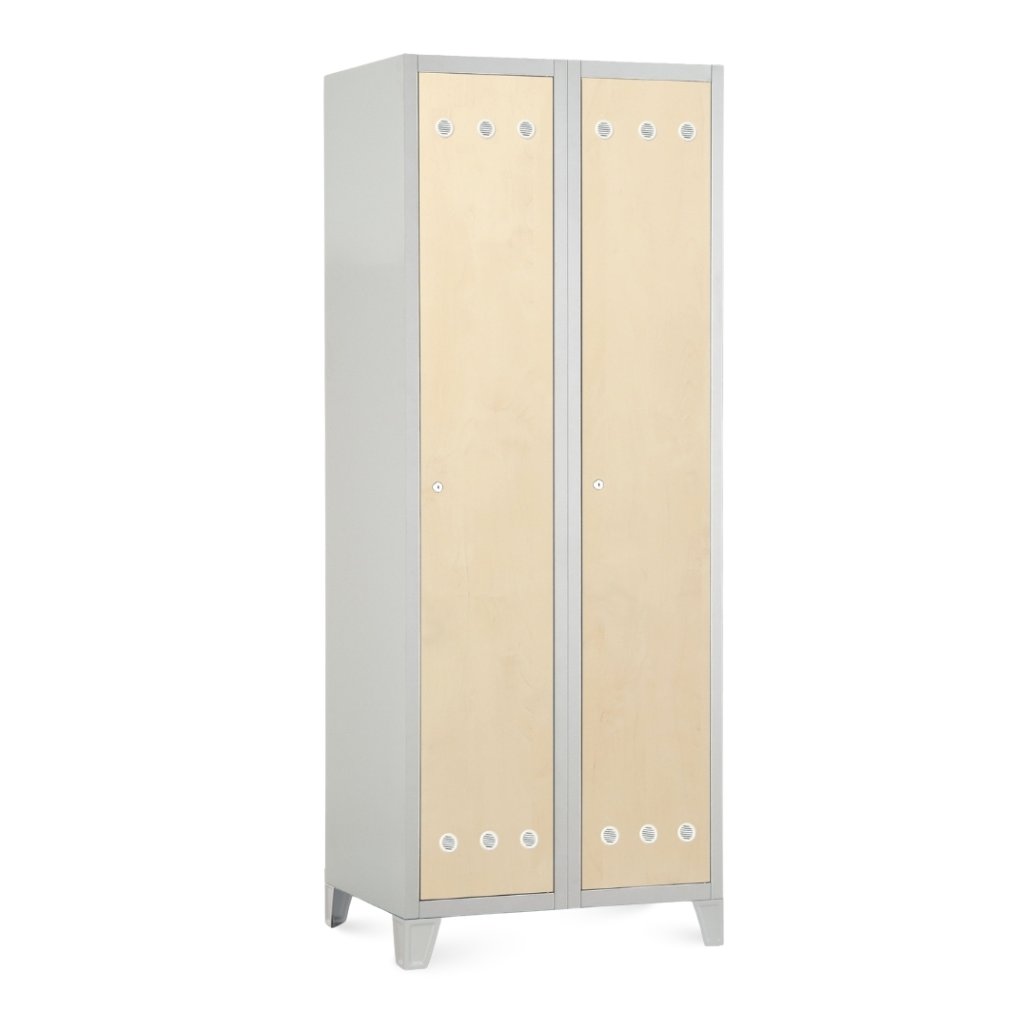 Fém szekrény fa ajtókkal, 80 x 50 x 190 cm, fix lábakkal, hengerzár, juharfa
