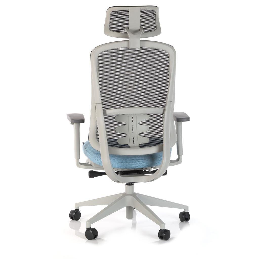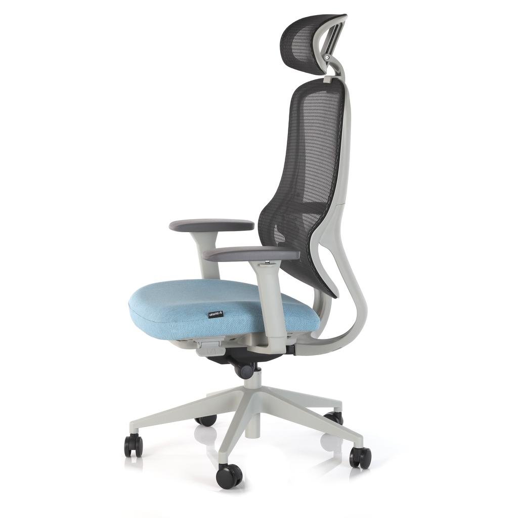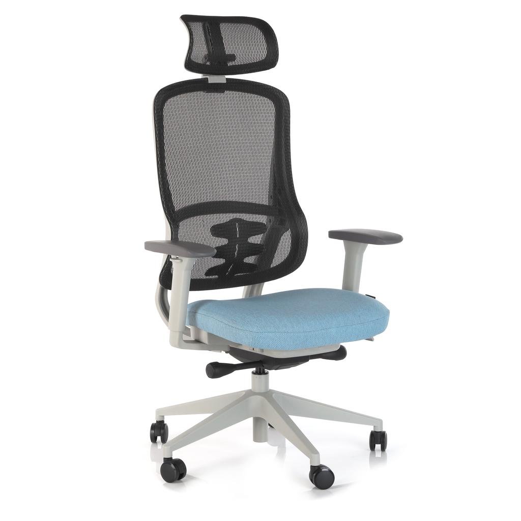 A szék ergonomikus kialakítású, szinkron mechanizmussal rendelkezik, amely lehetővé teszi a háttámla és az ülés megfelelő egyidejű mozgását, így segíti a helyes testtartást. A deréktámasz fix, rögzített pozícióban támogatja a gerinc alsó részét, míg az állítható magasságú fejtámla és karfák tovább növelik az egyéni kényelmet.