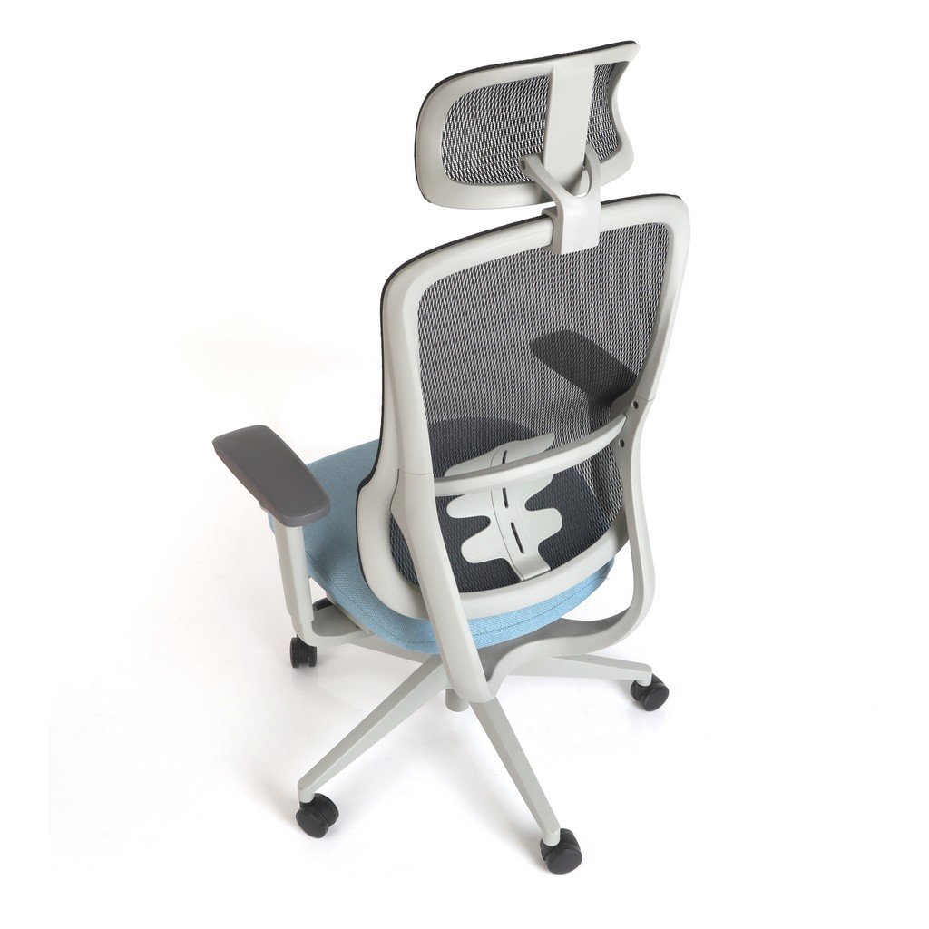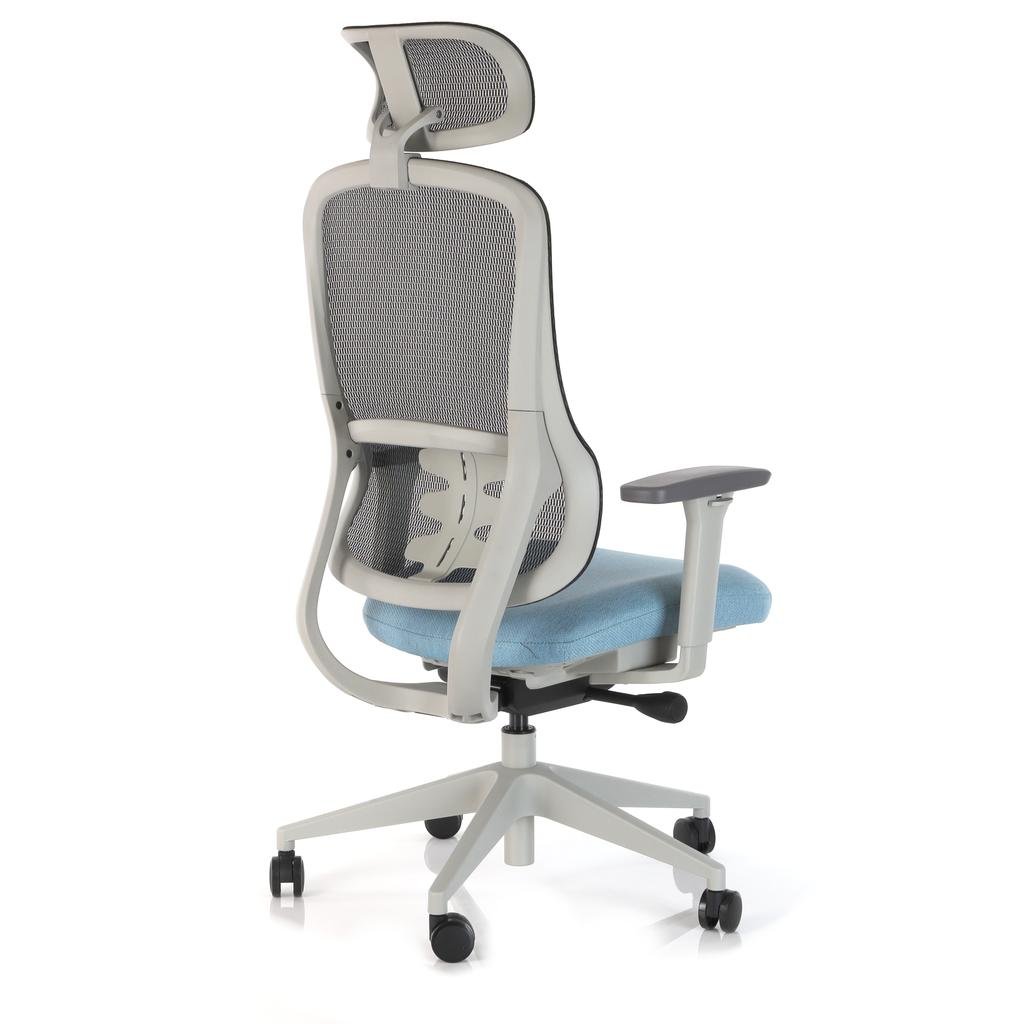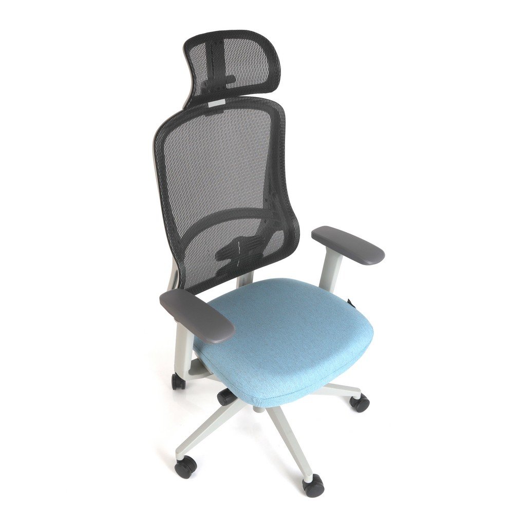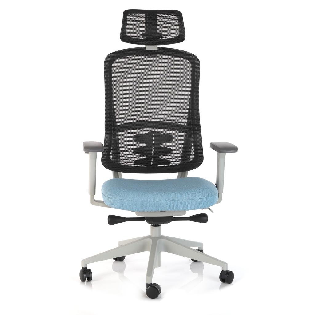 A szék ergonomikus kialakítású, szinkron mechanizmussal rendelkezik, amely lehetővé teszi a háttámla és az ülés megfelelő egyidejű mozgását, így segíti a helyes testtartást. A deréktámasz fix, rögzített pozícióban támogatja a gerinc alsó részét, míg az állítható magasságú fejtámla és karfák tovább növelik az egyéni kényelmet.