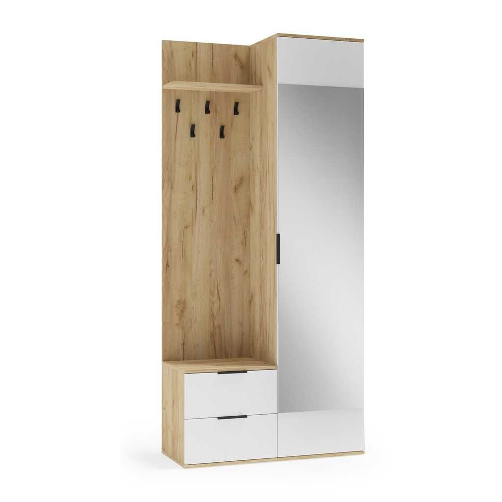Ez a Garner előszobafal ideális választás azok számára, akik praktikus és esztétikus megoldást keresnek előszobájuk berendezésére. A fa anyagból készült bútor tartós és masszív, így hosszú évekig megbízható társ lesz otthonában. A beépített fogasokkal és polcokkal a kabátok, táskák és egyéb kiegészítők rendben tarthatók, míg a nagy méretű tükör megkönnyíti az indulás előtti utolsó ellenőrzést.