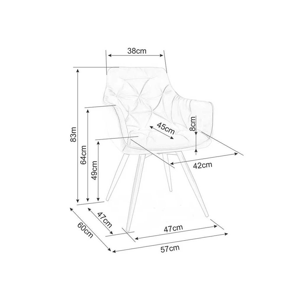 A Garrus Velvet étkezőszék kényelmes és stílusos választás minden otthonába. Szövet ülőfelülete és karfái gondoskodnak a jó tartásról és a hosszú órákon át tartó kényelmes ülésről. Erős, fém alapja stabilitást biztosít, miközben modern megjelenést kölcsönöz a bútornak. 5 év garancia teszi megbízhatóvá választását, és könnyedén elbírja a 120 kg súlyt is.