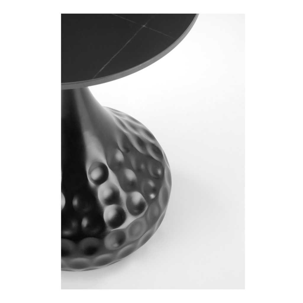 A Goccia dohányzóasztal egy modern és elegáns kiegészítő bármilyen nappaliba vagy pihenőhelyiségbe. Különleges kör alakú formája és a kőből készült felső deszka garantálja a stabil és tartós használatot. Az asztal fém alapja erős szerkezetet biztosít, amely mellett könnyű, egyszerűen mozgatható darab marad.