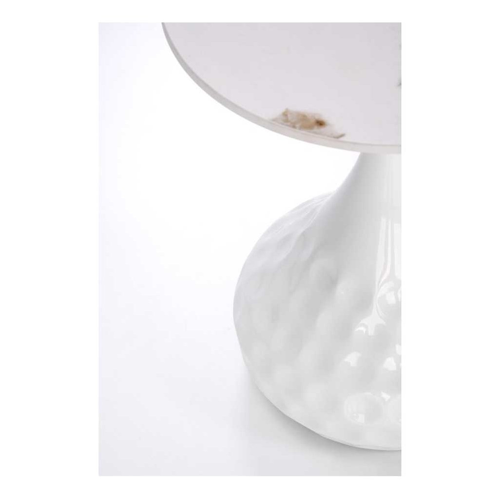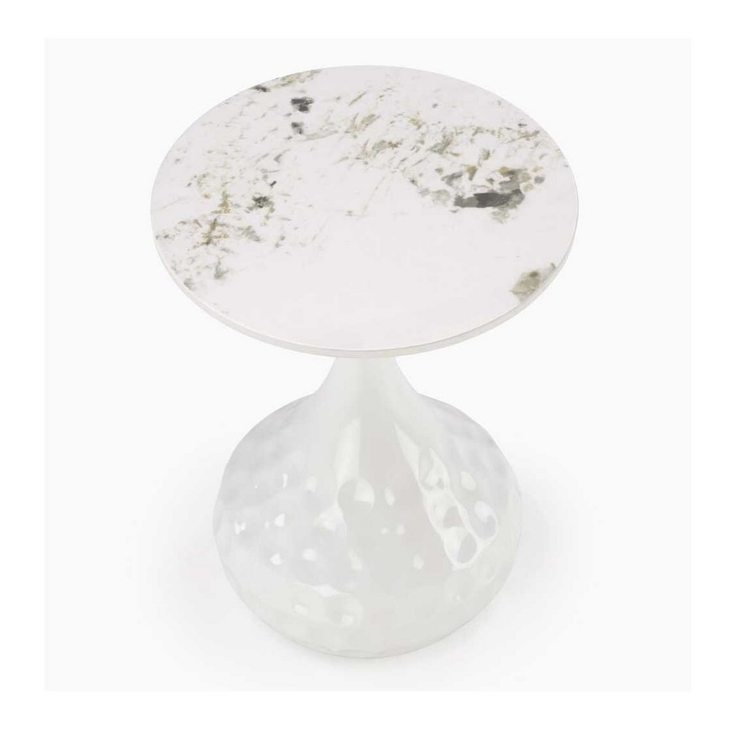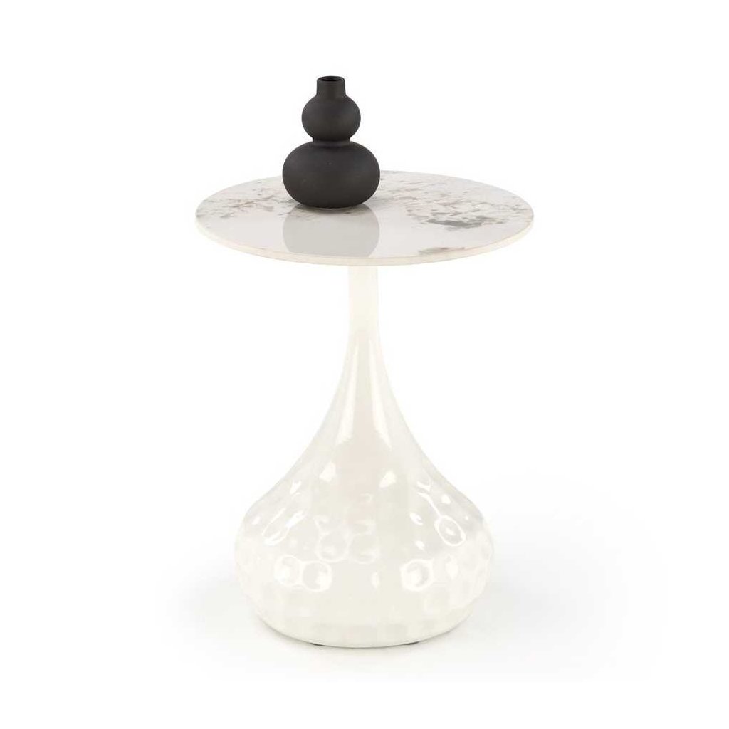 A Goccia dohányzóasztal egy modern és elegáns kiegészítő bármilyen nappaliba vagy pihenőhelyiségbe. Különleges kör alakú formája és a kőből készült felső deszka garantálja a stabil és tartós használatot. Az asztal fém alapja erős szerkezetet biztosít, amely mellett könnyű, egyszerűen mozgatható darab marad.