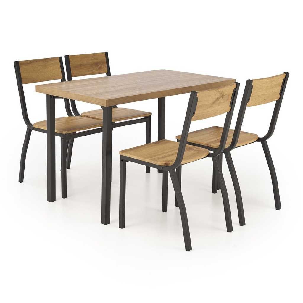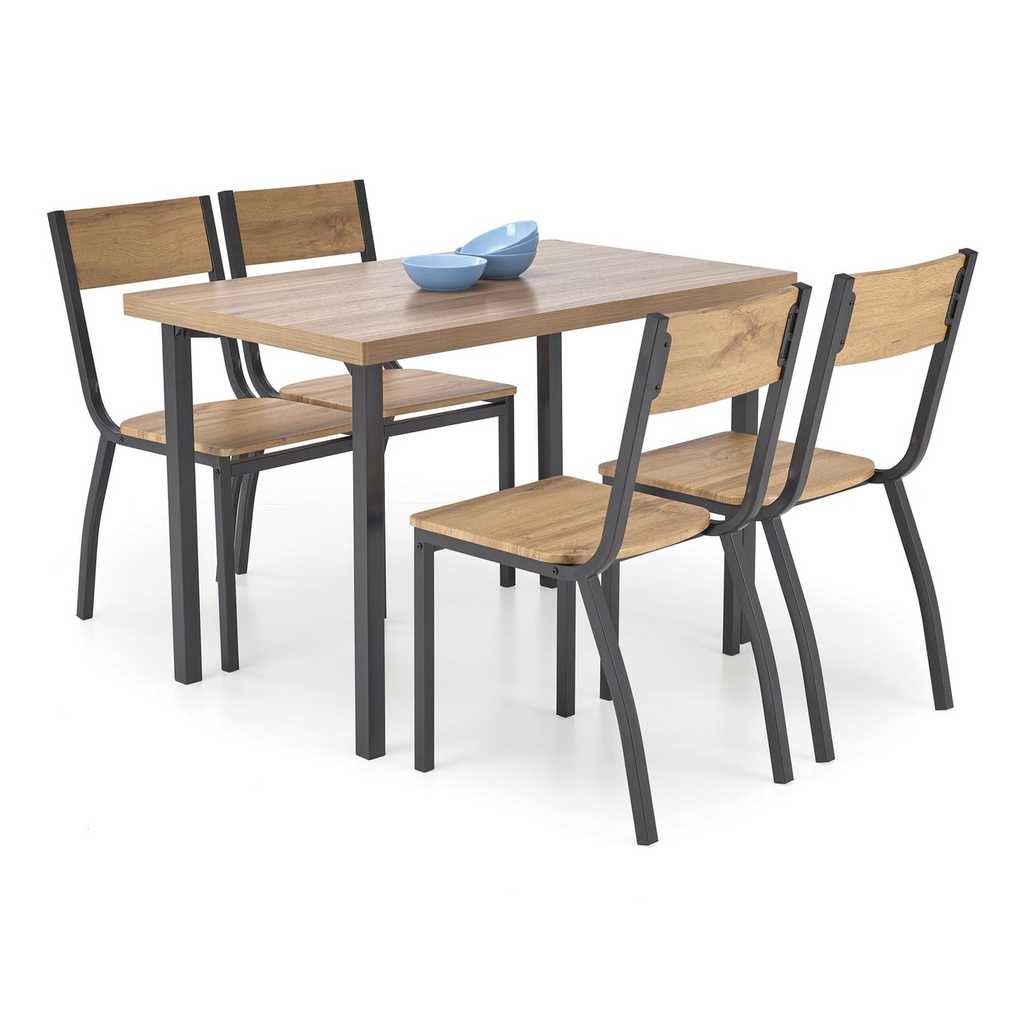 A Graham étkezőgarnitúra egy praktikus és tartós bútor, amely ideális választás családi vagy baráti összejövetelekhez. A készlet 4 széket és egy asztalt tartalmaz, biztosítva elegendő ülőhelyet, miközben stílusos megjelenést kölcsönöz étkezőjének. Az asztallap és a székek felső része természetes fa anyagból készültek, míg a stabil alap fém konstrukcióval rendelkezik, ami garantálja a hosszú élettartamot és a masszív szerkezetet.