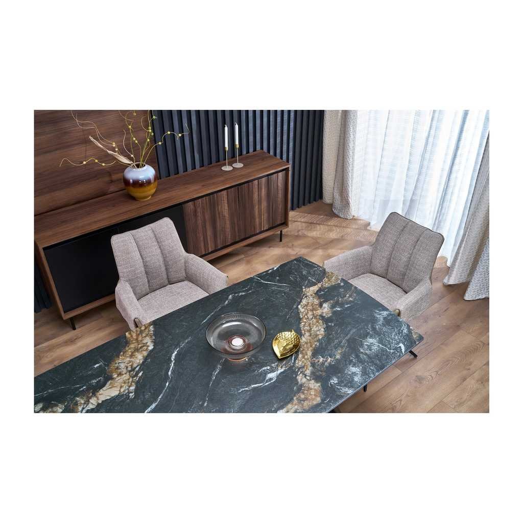 A Havelock étkezőasztal elegáns és tartós megoldás mindazok számára, akik modern stílusban szeretnék berendezni otthonukat. Kőszerű anyagának köszönhetően rendkívül masszív és hosszú élettartamú, így minden étkezés különleges alkalommá válik körülötte.