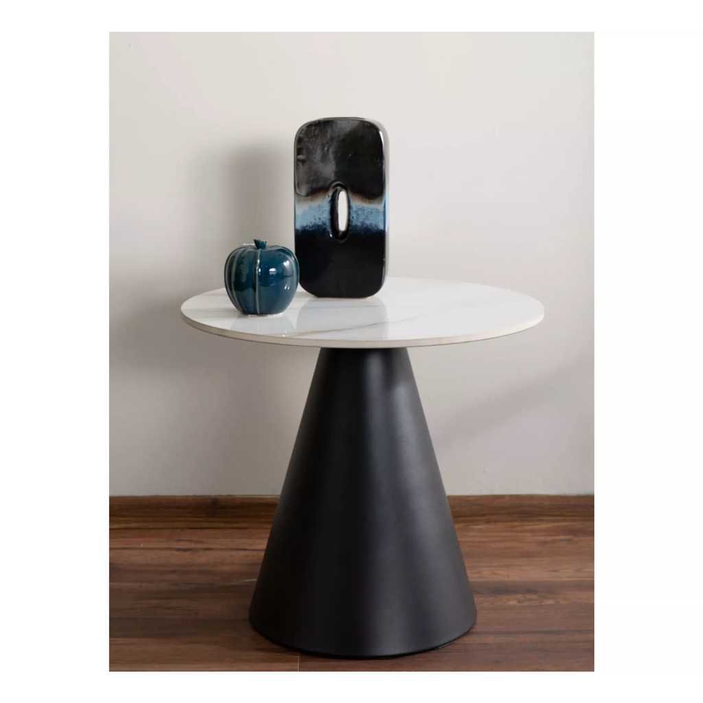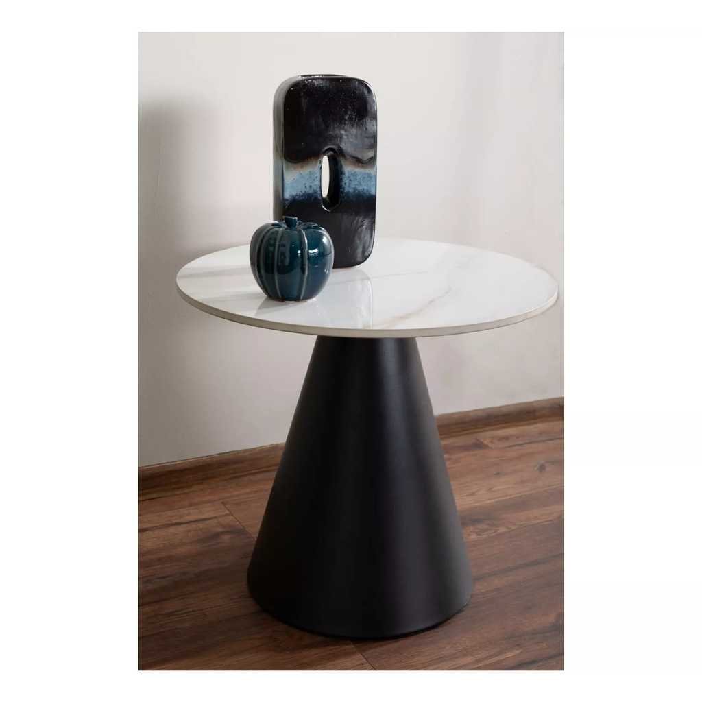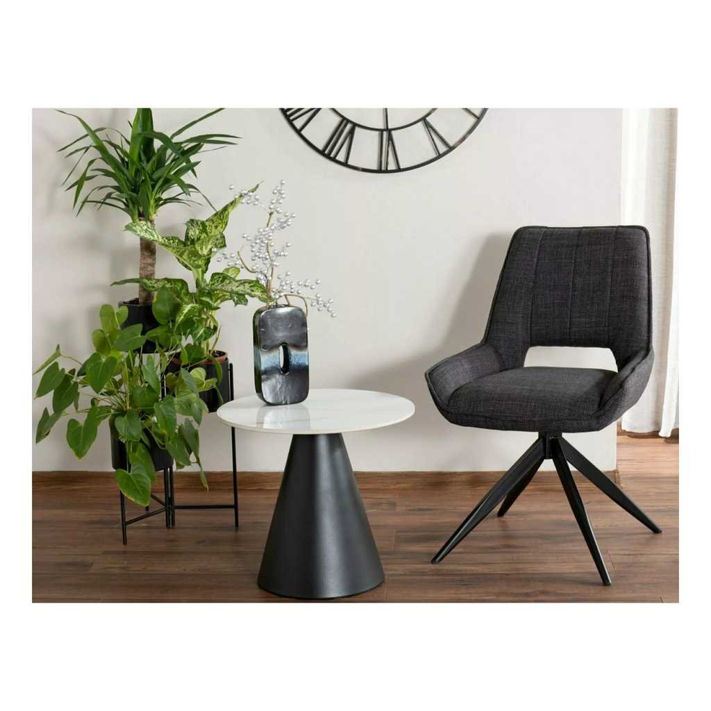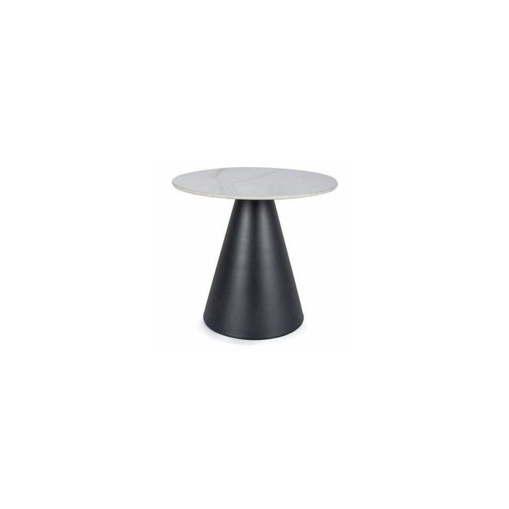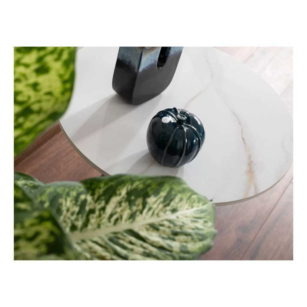 Az Imola dohányzóasztal modern és stílusos kiegészítője lehet otthonának. Kerek formájának köszönhetően könnyedén illeszkedik bármilyen lakótérbe, miközben kíméletes mérete ideálissá teszi kisebb helyiségekbe is. A felső lapja kerámiából készült, amely tartós és könnyen tisztítható, míg a masszív fém alap stabilitást biztosít az asztalnak.