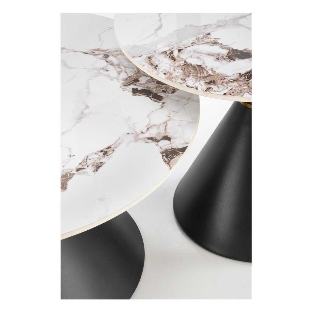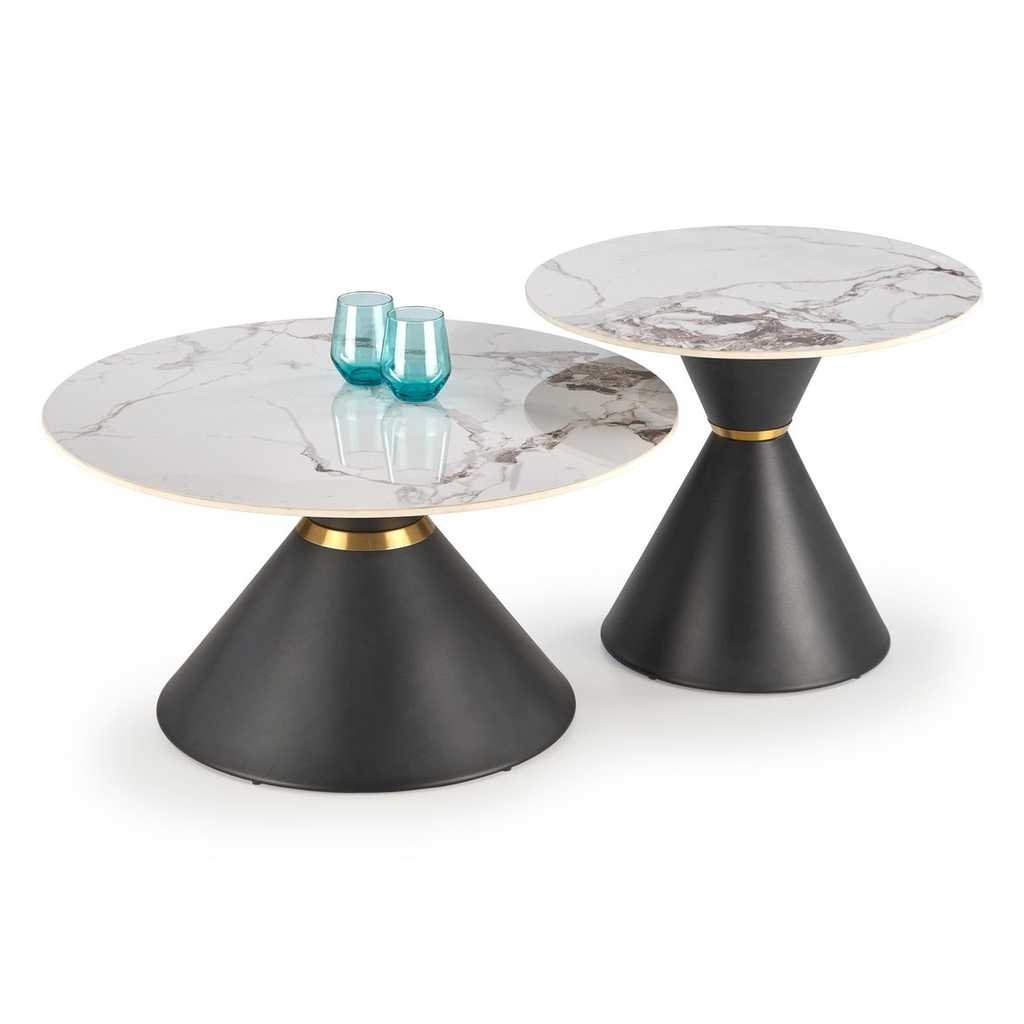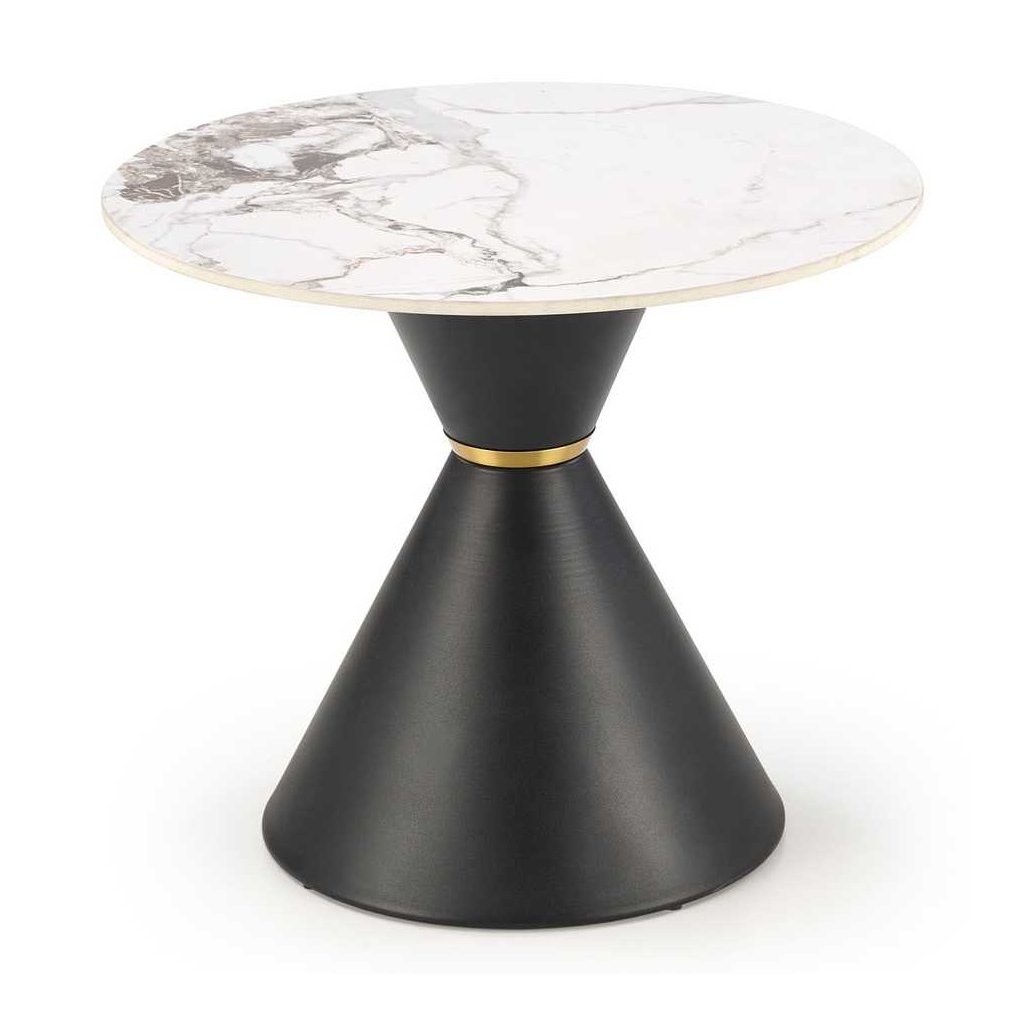 A Jameson A dohányzóasztal egy elegáns és masszív darab, amely tökéletes kiegészítője lehet bármilyen lakótérnek. Kör alakú asztallapja kőből készült, ami nemcsak esztétikus, hanem tartós is, így hosszú távon élvezheti a használatát. A fémből készített stabil alap biztosítja a megfelelő támasztékot és megbízhatóságot.
