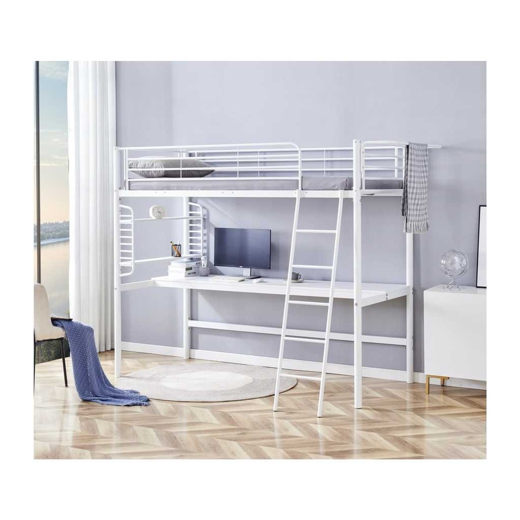 A Joliet íróasztalos emeletes ágy ideális megoldás kis terek maximális kihasználására. Modern fémvázas kialakítása biztosítja a tartósságot és stabilitást, miközben a felső ágyrész alatt praktikus íróasztal található, amely kényelmes helyet nyújt tanuláshoz vagy munkához. Az ágy mérete 90 x 200 cm, ami kényelmes fekvőfelületet biztosít egy személy számára.