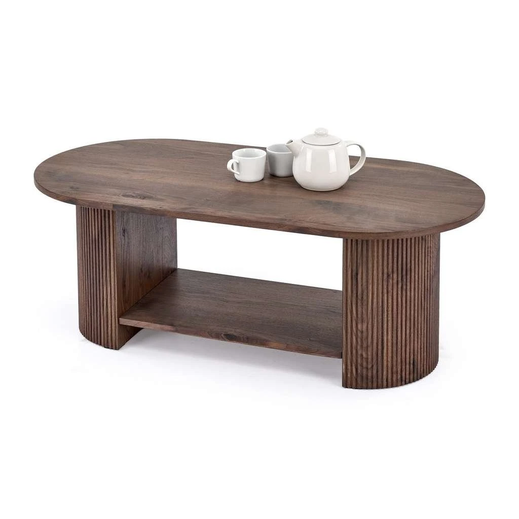 A bútor felső lapja és alapja masszív fából készült, így nemcsak esztétikus, de tartós is. Méretei révén ideális méretű, hogy elegendő helyet biztosítson a szoba központi részén anélkül, hogy túlzsúfolná a teret.
