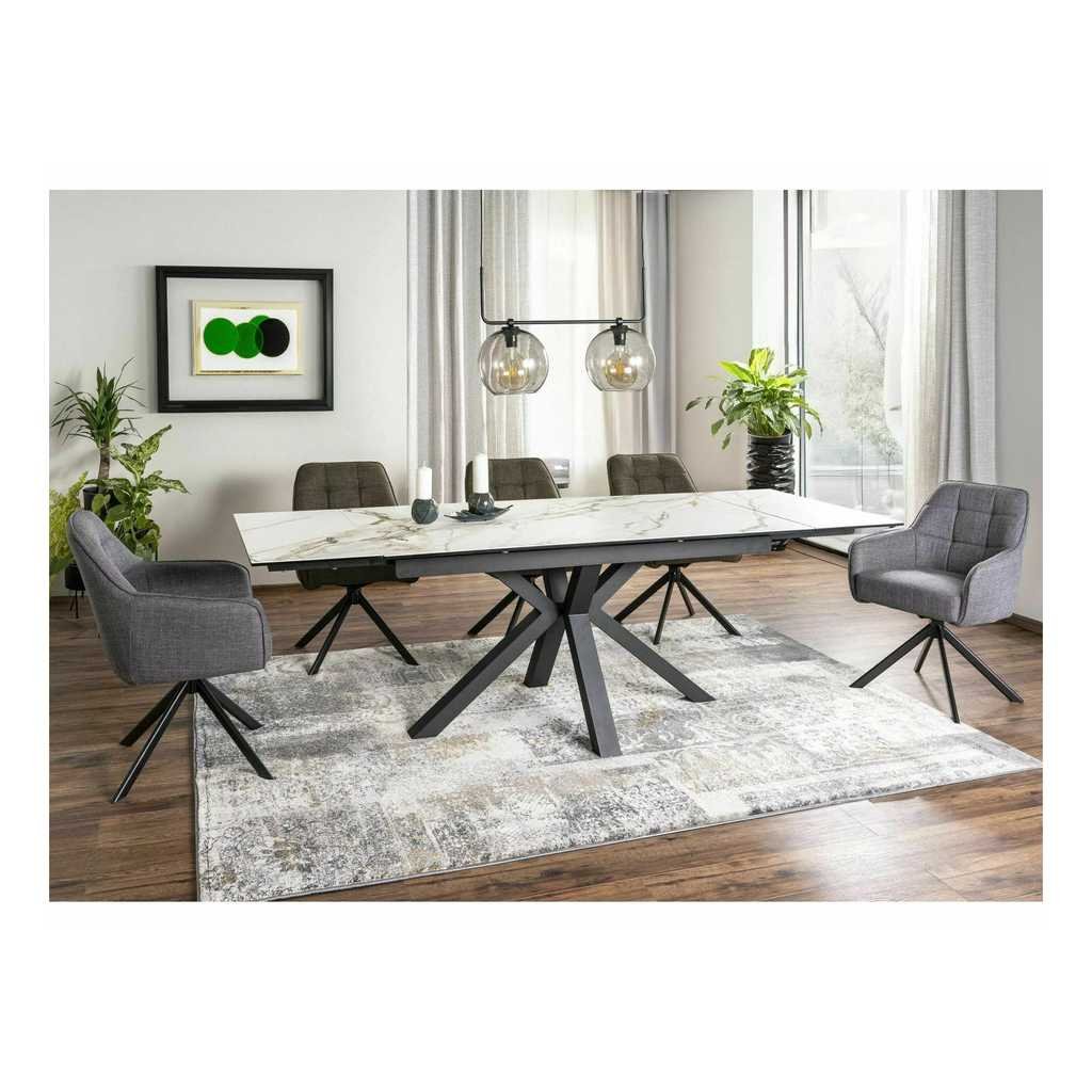 A Kaye étkezőszék modern kialakításával és kényelmes szövetborításával tökéletes választás mindennapi használatra. Masszív fém alapjának köszönhetően stabil és tartós, miközben az ergonomikus ülőfelület és háttámla kényelmes ülést biztosít hosszabb időn át is. A széket otthon, munkahelyen vagy étteremben is használhatja, kiválóan alkalmazkodik különböző környezetekhez.