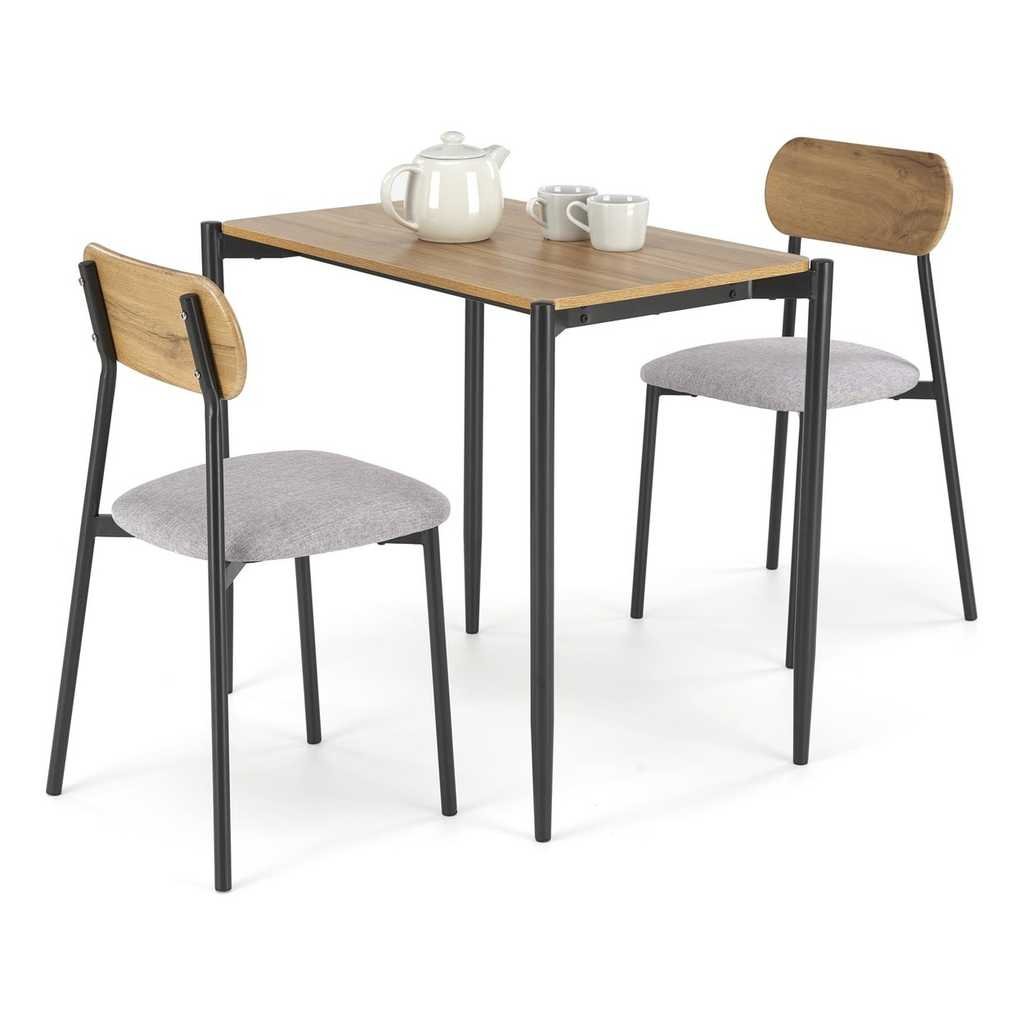 A Kingston étkezőgarnitúra 2+1 tökéletes választás kisebb étkezőkbe vagy kényelmes reggeli sarkokba. A természetes fa és fém kombinációja modern, mégis időtálló megjelenést biztosít. A garnitúra kényelmes ülést kínál két személy számára, miközben stabil és tartós kialakítással rendelkezik, így hosszú távon használható. A fa asztallap kiváló minőségű anyagból készült, amely kellemes tapintású és könnyen tisztítható.