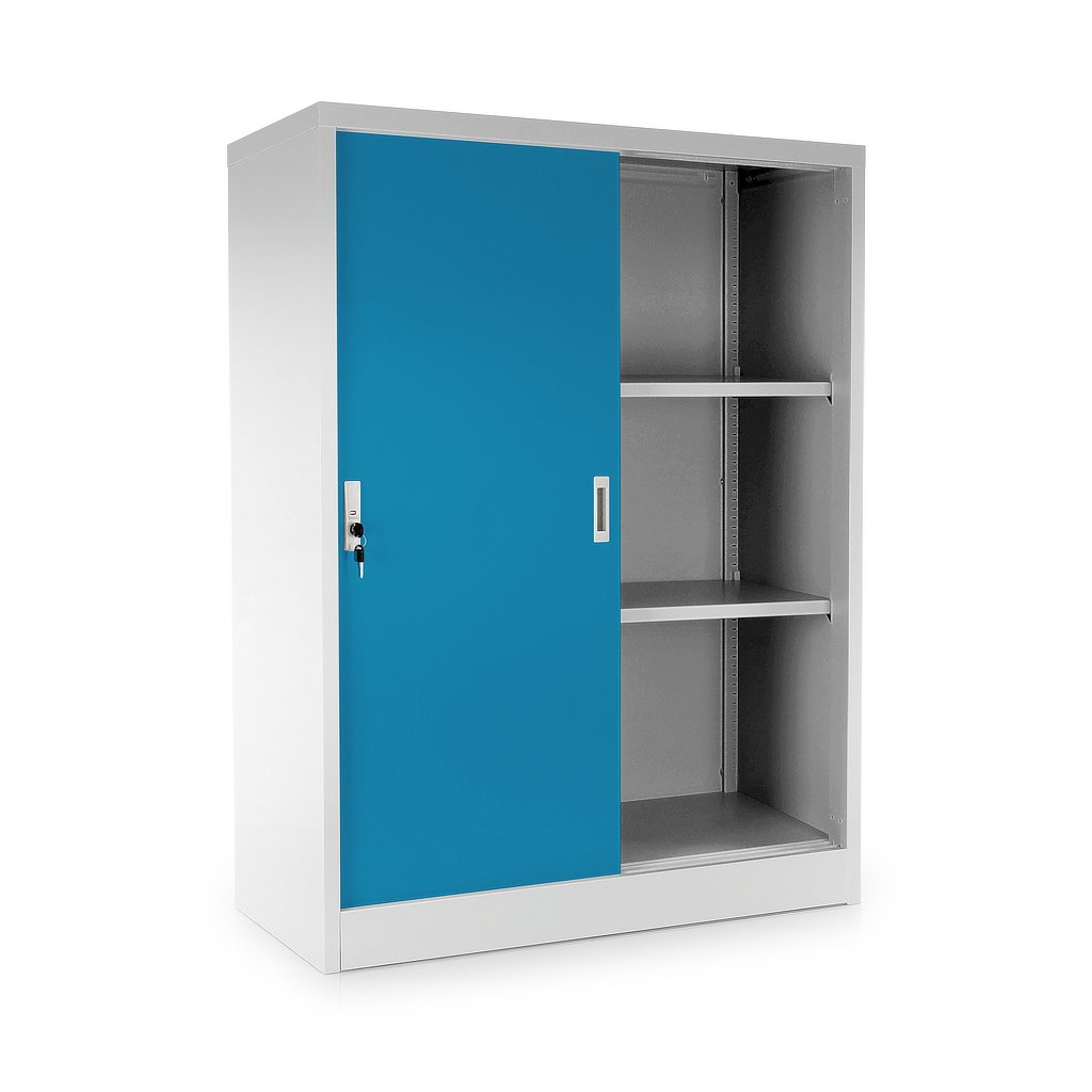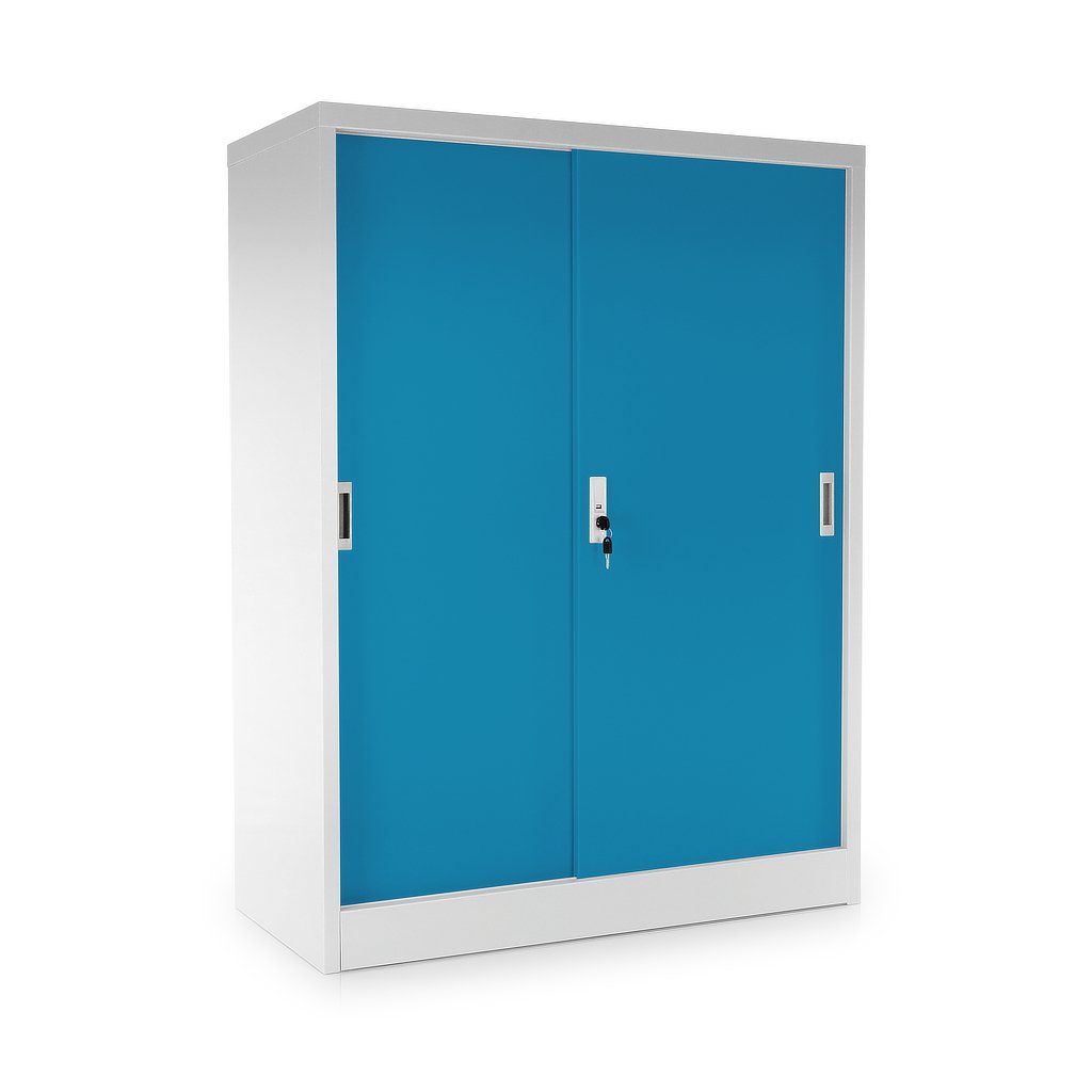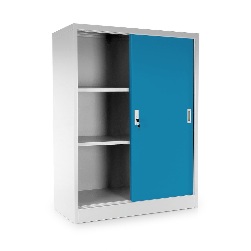 Közepes univerzális fém szekrény tolóajtókkal 90 x 40 x 120 cm, hengerzár, kék - ral 5012