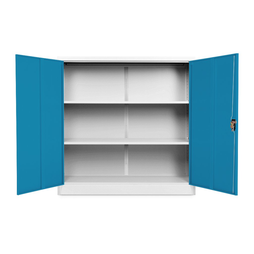 Közepes univerzális fémszekrény 120 x 40 x 120 cm, hengerzár, kék - ral 5012