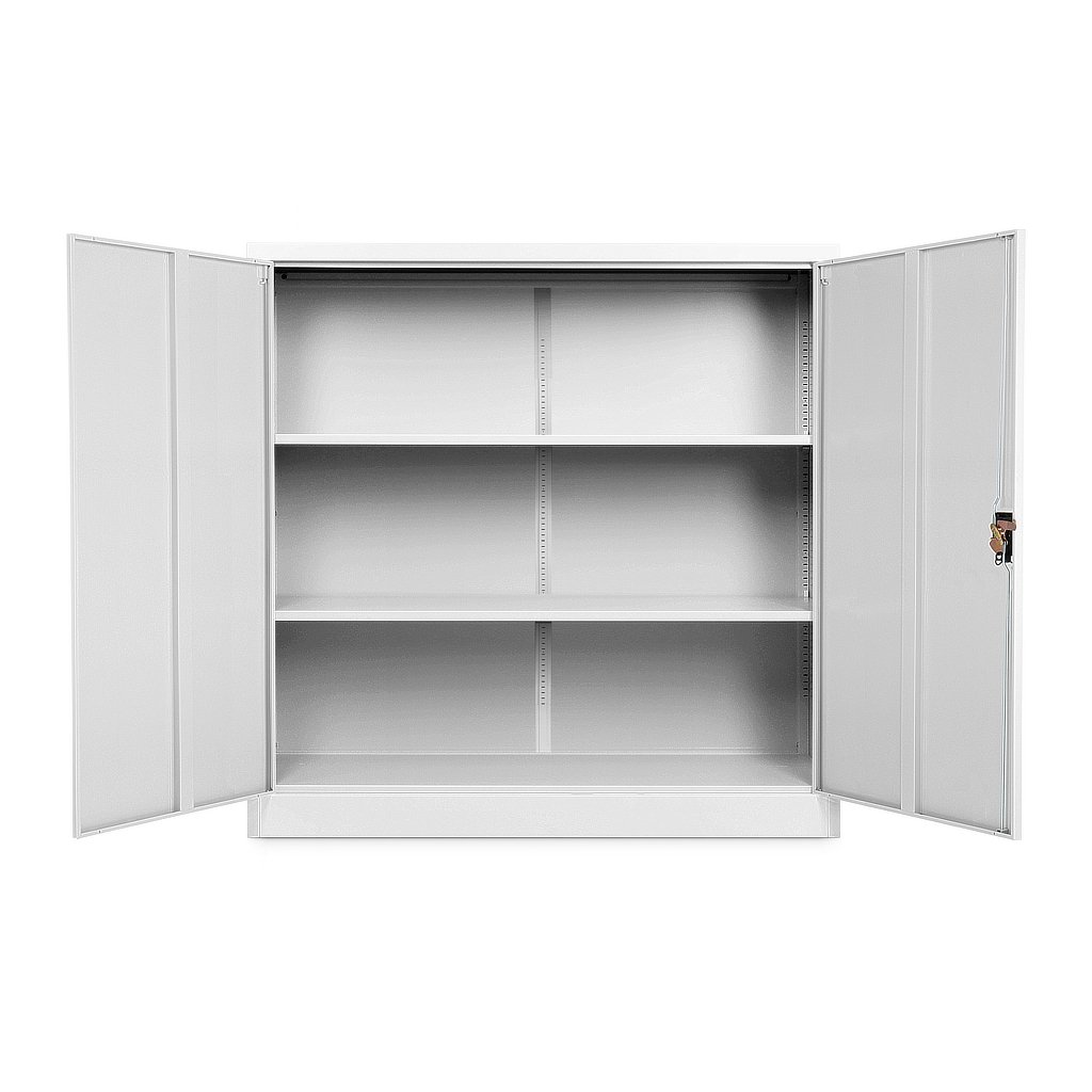 Ez a fémszekrény egy megbízható és tartós tároló megoldás, amely hosszú távon szolgálja igényeit. Praktikus kialakítása és strapabíró anyaga miatt tökéletes választás mindennapi használatra, legyen szó üzleti vagy otthoni környezetről.