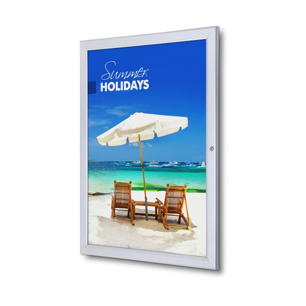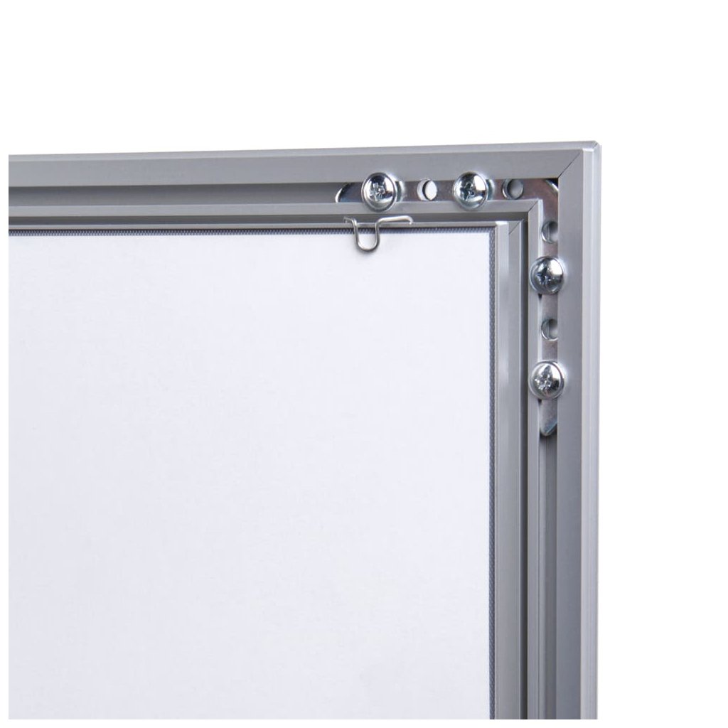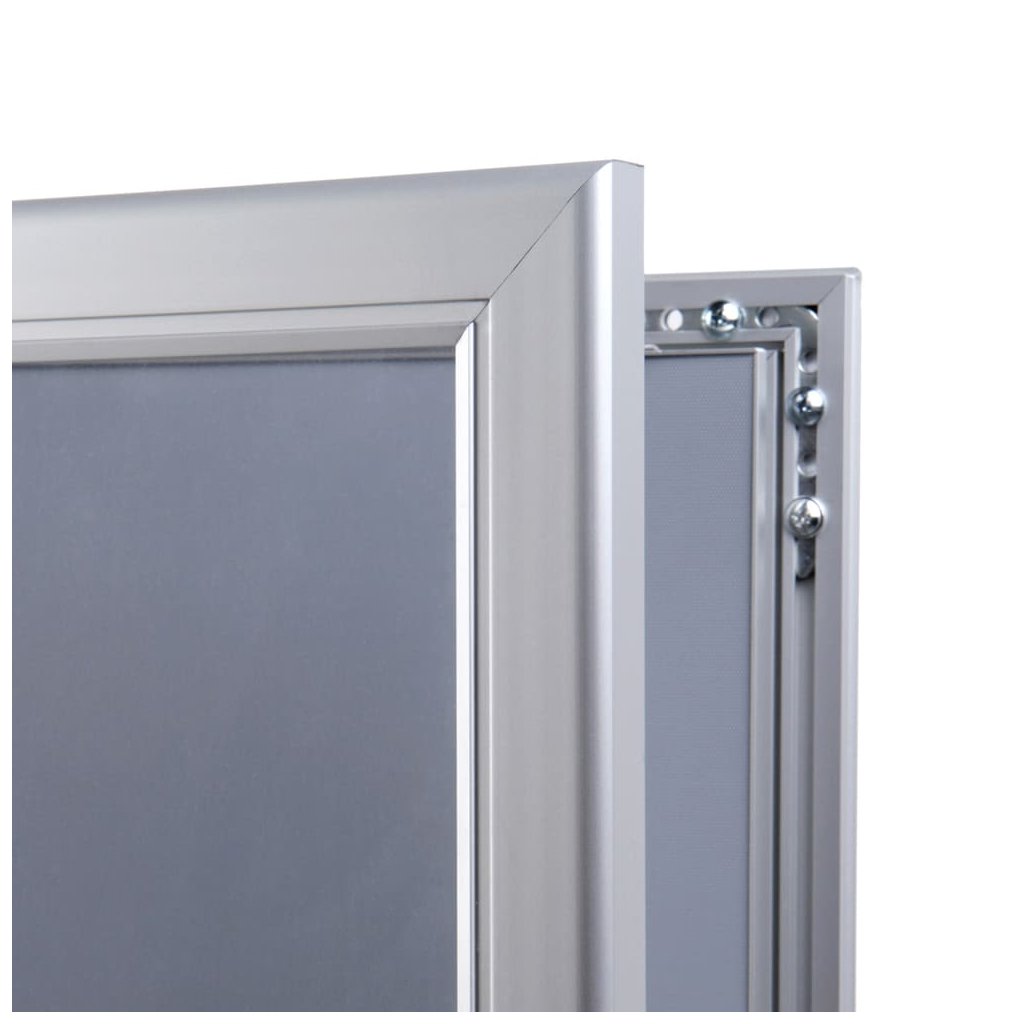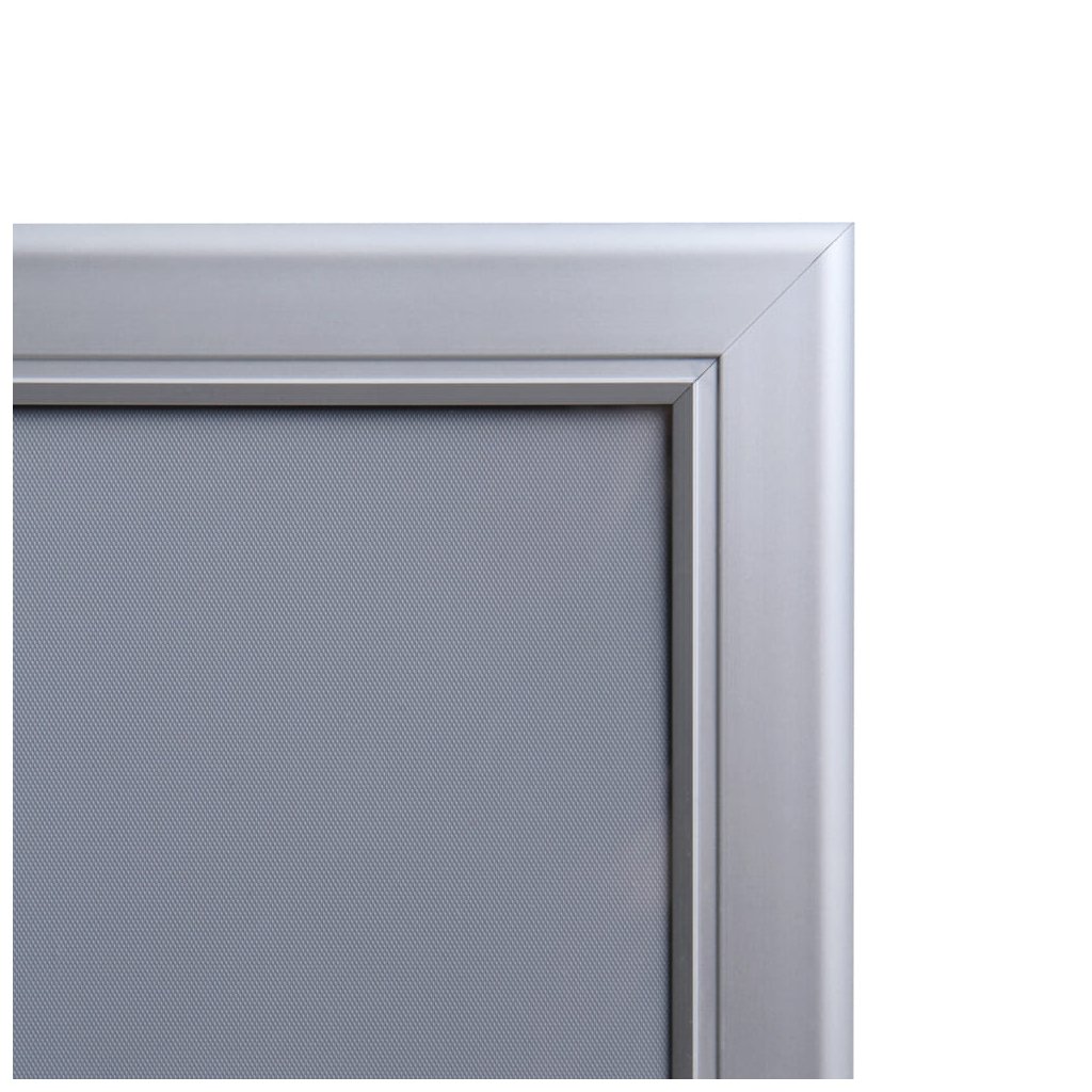 A kültéri poszterkeret kiváló megoldás információk bemutatására vagy fontos nyomtatott anyagok látható helyen történő megjelenítésére. Főleg akkorposzterek megjelenítésére. A váz masszív alumínium szerkezetének köszönhetően kültéri használatra is alkalmas. Nagyon ellenálló, nem csak a kedvezőtlen időjárásnak, hanem a mechanikai sérüléseknek is. Emellett remekül is néz ki.
